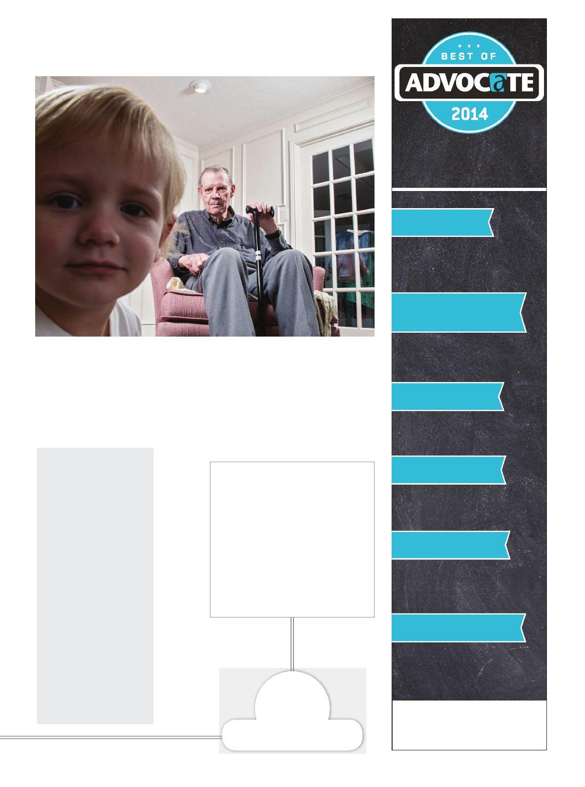 JANUARY 2015 lakehighlands.advocatemag.com 5 in every issue DEPARTMENT COLUMNS opening remarks 6 launch 9 events 14 food 15 worship 40 live local 41 news¬es 41 scene&heard 42 crime 47 ADVERTISING the goods 12 dining spotlight 16 marketplace 35 education guide 38 worship listings 40 bulletin board 42 home services 44 health + wellness 47 Awakening Parkinson’s took too much from John Logan. Hoping to get his life back, he risked a complex and uncertain procedure. John Logan and grandson, Finn: Photo by Danny Fulgencio 28 LAKEHIGHLANDS.ADVOCATEMAG.COM for more NEWS visit us online “Kids, they can accept things. ‘I have a grandad who falls down, a grandad who shakes real bad.’ They are like that.” JOHN LOGAN PAGE 28 Congratulations to 2014 Best of Advocate Winners! Primo Brother’s JJ’s Cafe Cafe Silva Varsity Grill Unrefined Bakery City View Antiques Best Breakfast/ Brunch: Best Coffee: Best Burger: Best Gift Shop: Best Dessert: Best Pizza: Join us in 2015 for the more of the best lakehighlands.advocatemag.com/bestof2014