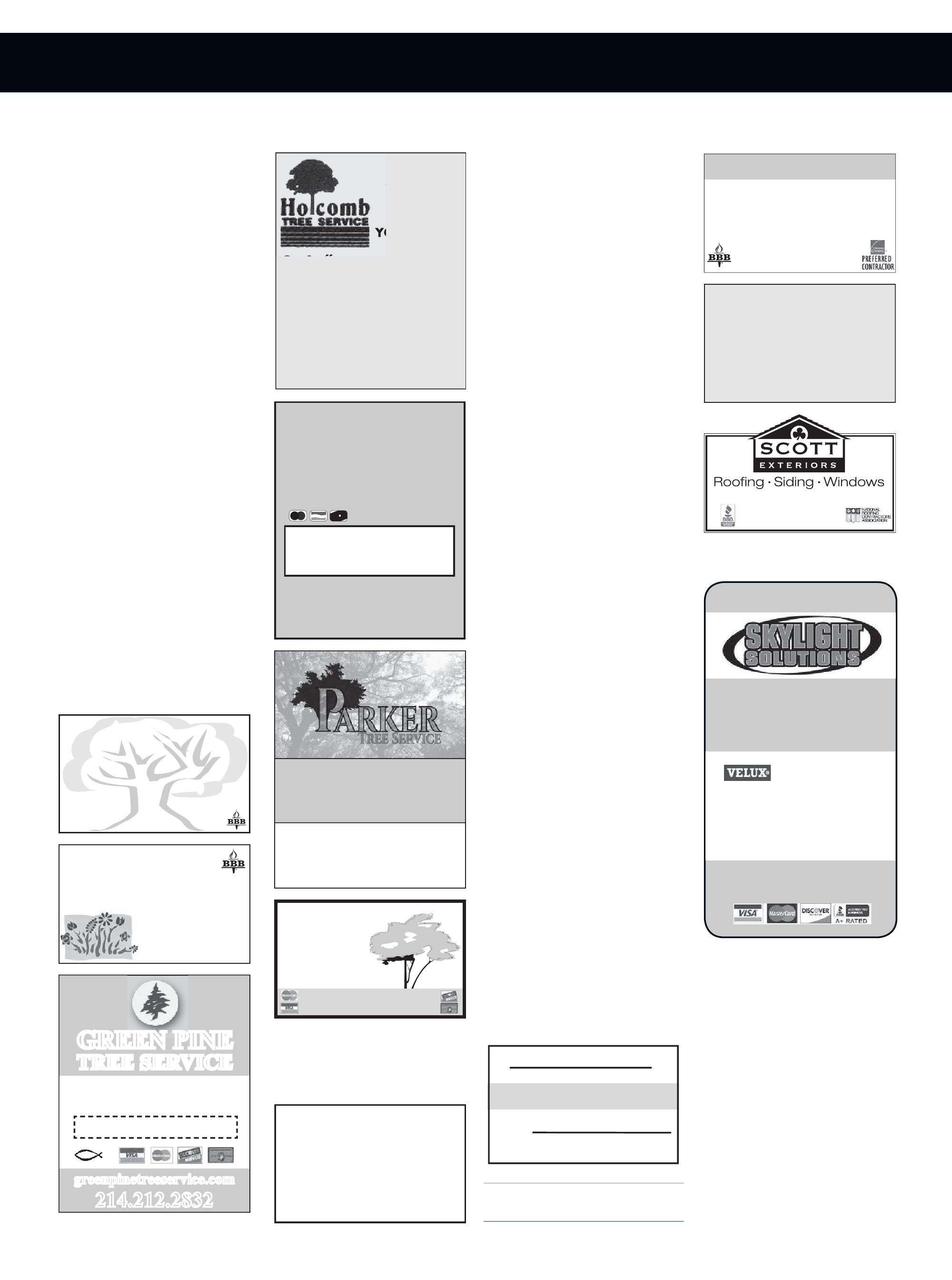ADVOCATE PUBLISHING does not pre-screen, recommend or investigate the advertisements and/or Advertisers published in our magazines. As a result, Advocate Publishing is not responsible for your dealings with any Advertiser. Please ask each Advertiser that you contact to show you the necessary licenses and/or permits required to perform the work you are requesting. Advocate Publishing takes comments and/or complaints about Advertisers seriously, and we do not publish advertisements that we know are inaccurate, misleading and/or do not live up to the standards set by our publications. If you have a legitimate complaint or positive comment about an Advertiser, please contact us at 214560-4203. Advocate Publishing recommends that you ask for and check references from each Advertiser that you contact, and we recommend that you obtain a written statement of work to be completed, and the price to be charged, prior to approving any work or providing an Advertiser with any deposit for work to be completed.