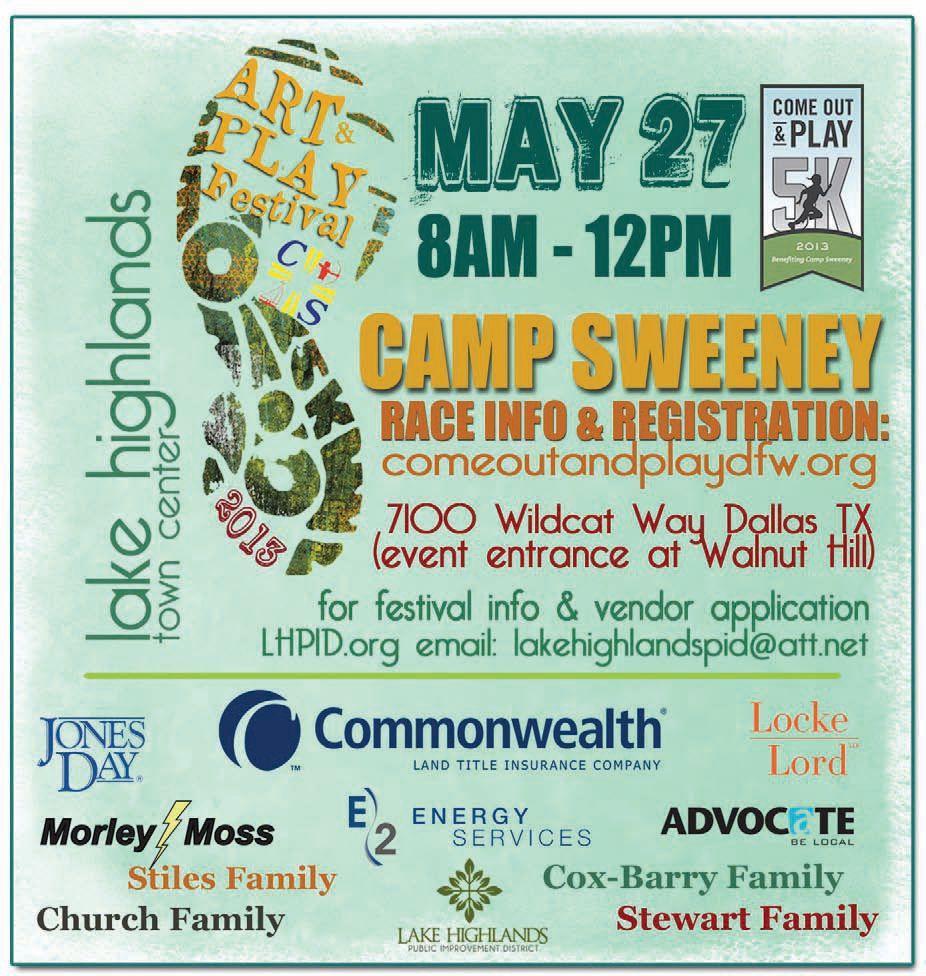 For inFormation on Future Cat meetings, watch for announcements on lakehighlands. advocatemag.com, or contact organizer Patrick Sanders, Northeast Division community prosecutor, patrick.sanders@dallascityhall.com