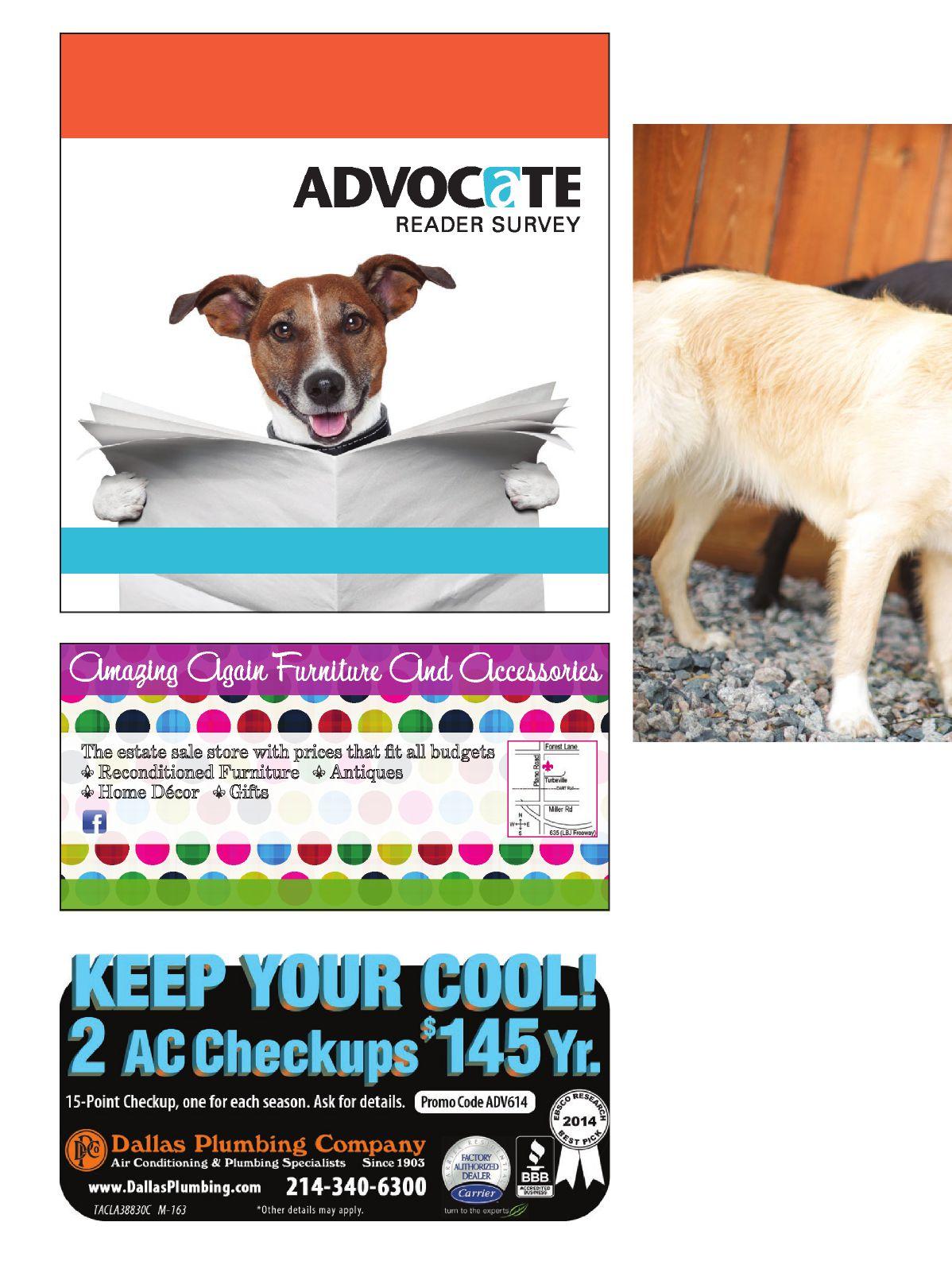 misleading and/or do not live up to the standards set by our publications. If you have a legitimate complaint or positive comment about an Advertiser, please contact us at 214-560-4203. Advocate Publishing recommends that you ask for and check references from each Advertiser that you contact, and we recommend that you obtain a written statement of work to be completed, and the price to be charged, prior to approving any work or providing an Advertiser with any deposit for work to be completed.