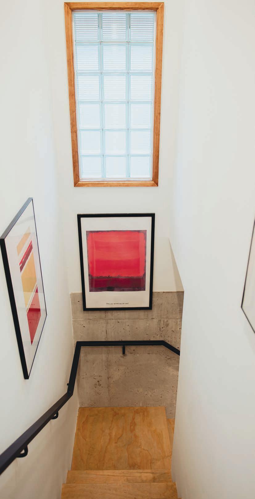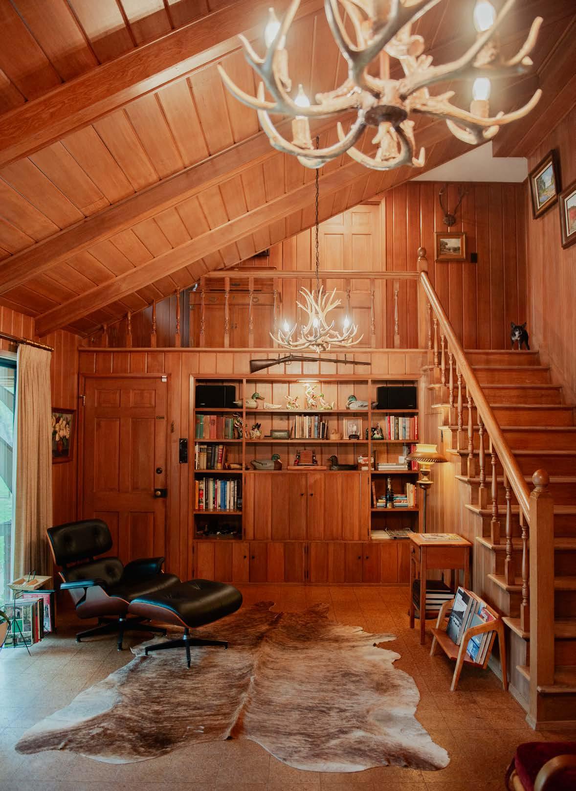 secret stairwell behind a closet door in an office leads to a basement utilized as a TV room. Photography by Lauren Allen.