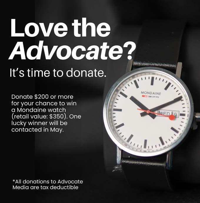 Advocate (c) 2024 is published monthly in print and daily online by Advocate Media - Dallas Inc., a 501(c)3 non-profit corporation based in Dallas and first published in 1991. Contents of this print magazine may not be reproduced. Advertisers and advertising agencies assume liability for the content of all advertisements and sponsorships