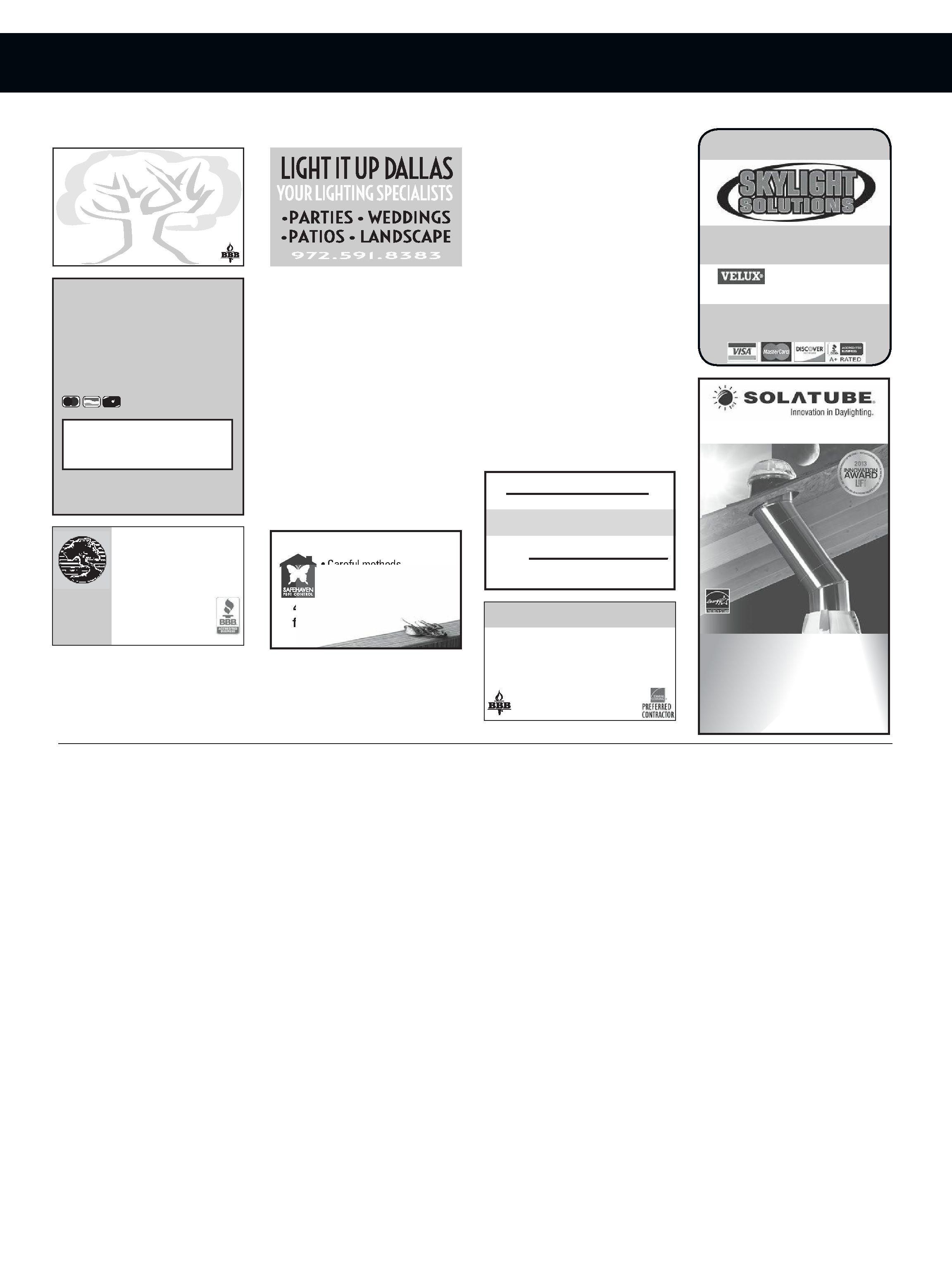 A BETTER TREE COMPANY • JUST TREES Complete tree services. Tree & Landscape Lighting! Mark 214-332-3444
