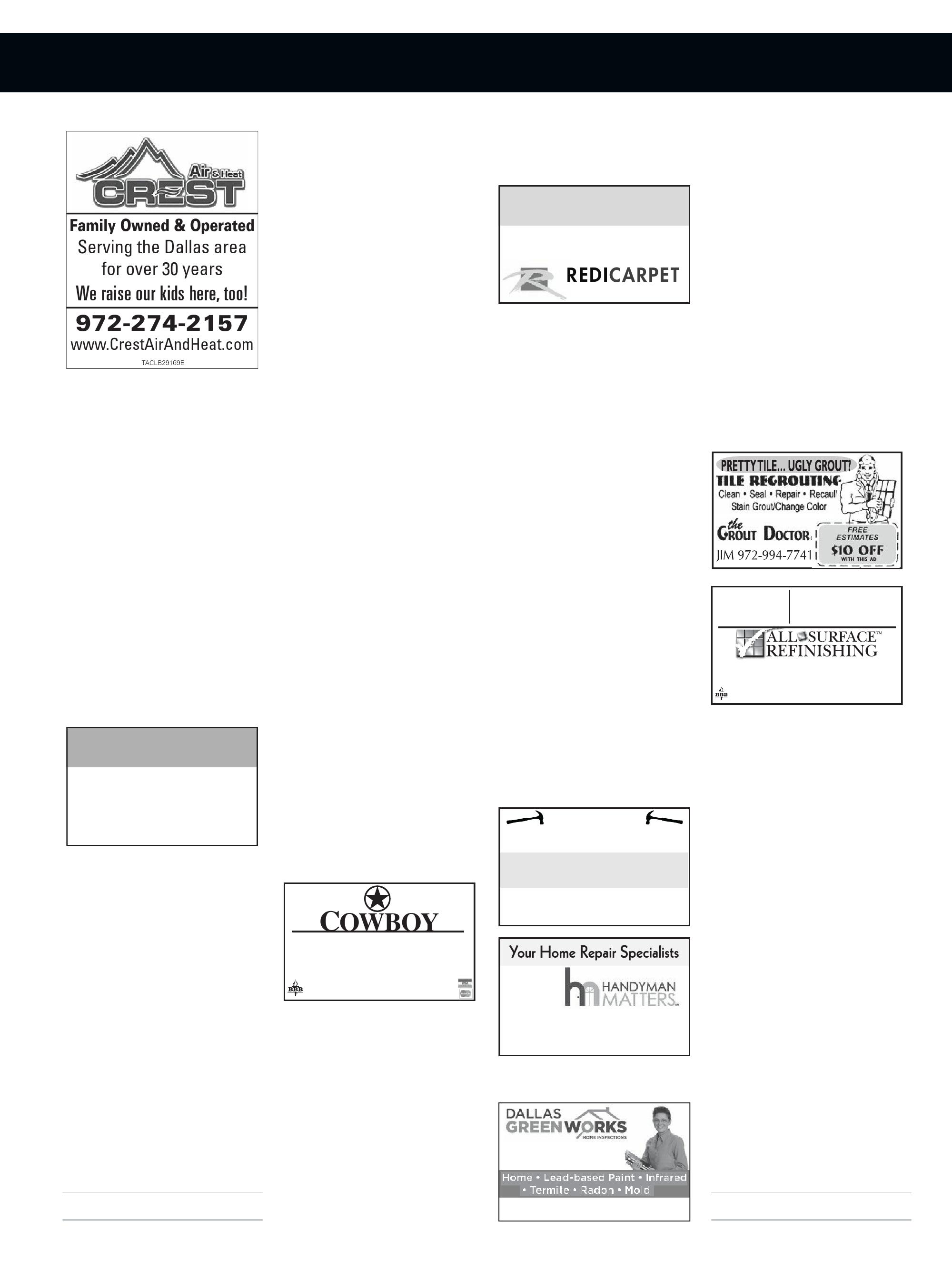 ADVOCATE PUBLISHING does not pre-screen, recommend or investigate the advertisements and/or Advertisers published in our magazines. As a result, Advocate Publishing is not responsible for your dealings with any Advertiser. Please ask each Advertiser that you contact to show you the necessary licenses and/or permits required to perform the work you are requesting. Advocate Publishing takes comments and/or complaints about Advertisers seriously, and we do not publish advertisements that we know are inaccurate, misleading and/or do not live up to the standards set by our publications. If you have a legitimate complaint or positive comment about an Advertiser, please contact us at 214-560-4203. Advocate Publishing recommends that you ask for and check references from each Advertiser that you contact, and we recommend that you obtain a written statement of work to be completed, and the price to be charged, prior to approving any work or providing an Advertiser with any deposit for work to be completed.