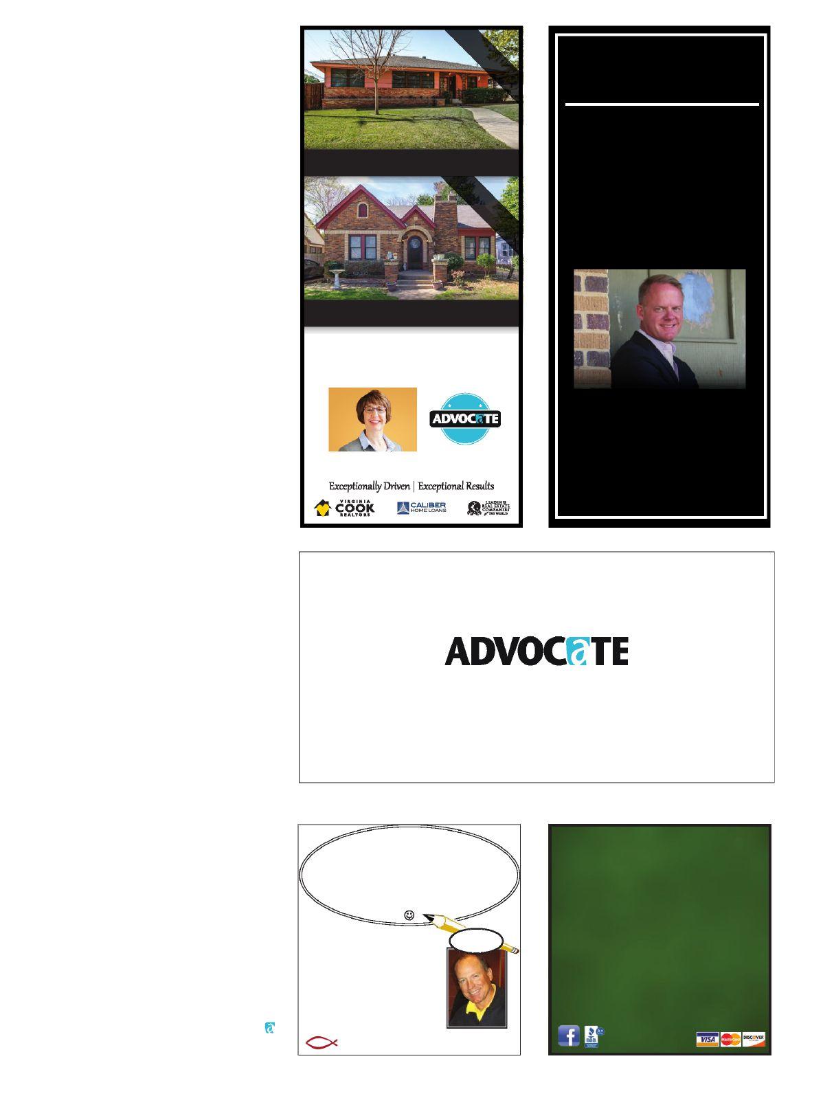 ADVOCATE PUBLISHING does not pre-screen, recommend or investigate the advertisements and/or Advertisers published in our magazines. As a result, Advocate Publishing is not responsible for your dealings with any Advertiser. Please ask each Advertiser that you contact to show you the necessary licenses and/or permits required to perform the work you are requesting. Advocate Publishing takes comments and/or complaints about Advertisers seriously, and we do not publish advertisements that we know are inaccurate, misleading and/or do not live up to the standards set by our publications. If you have a legitimate complaint or positive comment about an Advertiser, please contact us at 214-560-4203. Advocate Publishing recommends that you ask for and check references from each Advertiser that you contact, and we recommend that you obtain a written statement of work to be completed, and the price to be charged, prior to approving any work or providing an Advertiser with any deposit for work to be completed.