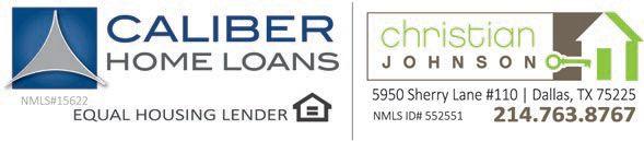 1421 Arizona Ave $109,900 723 Woolsey Dr $269,000 Jason Melton 214.883.6854 Robert Kucharski 214.356.5802 1211 N. Windomere Ave NEW LISTING Lisa Kleypas 214.727.5665 David Griffin 214.458.7663 654 Monssen Dr SOLD Robert Kucharski 214.356.5802 308 S. Clinton Ave SOLD Diane Sherman 469.767.1823 2010 Elmwood Ave SOLD Lisa Kleypas 214.727.5665 415 Allison Dr SOLD Contact Lisa Peters, 214.763.7931 lisa.peters@caliberhomeloans.com “Trees, bikes, dogs, evening walks,downtown views, one-of-a-kind restaurants and shops, porch swing conversations, landmark homes...” We get it. New homeowners here tell friends they haven’t moved to North Oak Cliff, they’ve moved to a time gone by. Life is different here. And no one gets that better than the agents at David Griffin & Company. Tour our listings at www.davidgriffin.com, or call 214.526.5626.
