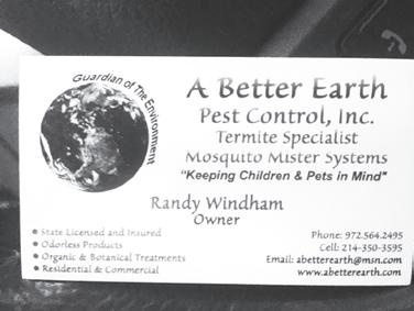 Termite Specialist - Mosquito Mister Systems Licensed · Insured · Residential · Commercial · Organic 214-350-3595 • Abetterearth.crw@gmail.com abetterearth.com