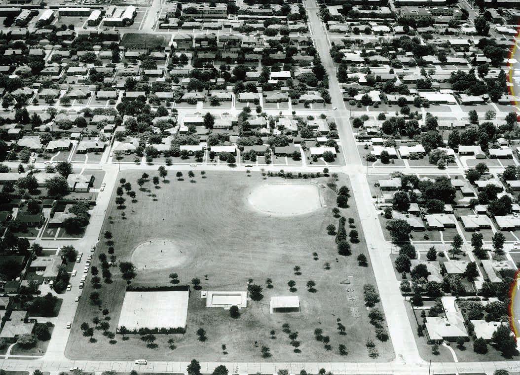 << A short five years later, the neighborhood around the park has been developed. The new tennis courts, pool and playground are visible as well as the newly planted trees.