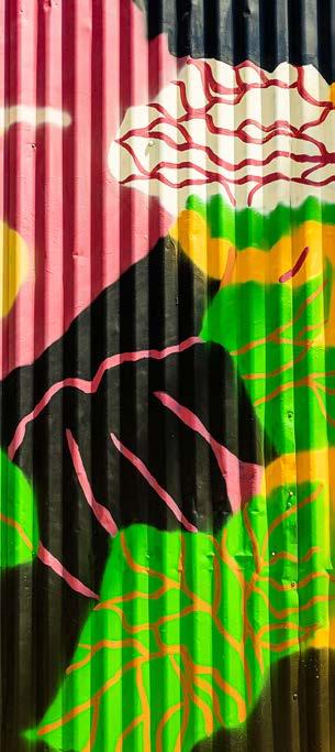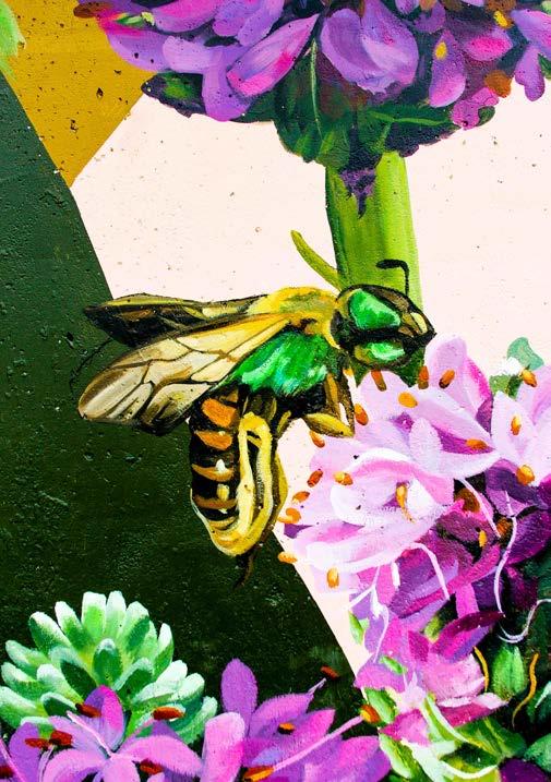 To prepare, Brooker enlisted the group’s collaboration and books as a guide to be factually correct on native species before starting. The mural uses high-grade latex paint from Sherwin Williams — walking distance across the bridge when Brooker meets short supply — and a coat of anti-graffiti.
