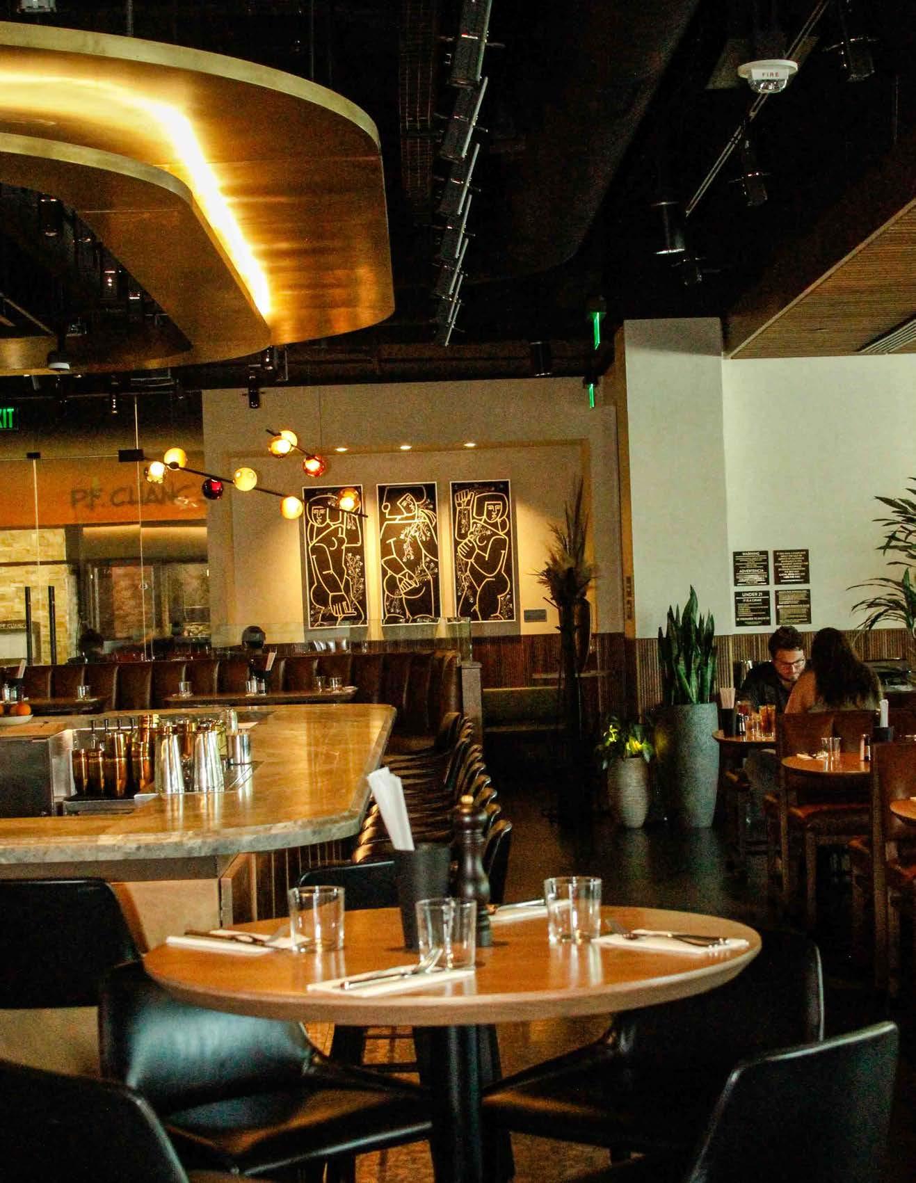 The JOEY Dallas bar is placed directly in the center of the restaurant, surrounded by high tables designed to encourage happy hour mingling.