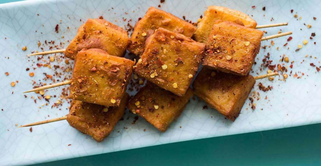 Tofu Chaun’r skewers ($7) are a spicy, gluten-free option on the ‘Hot Bites’ portion of the menu.