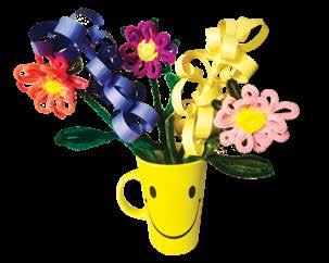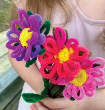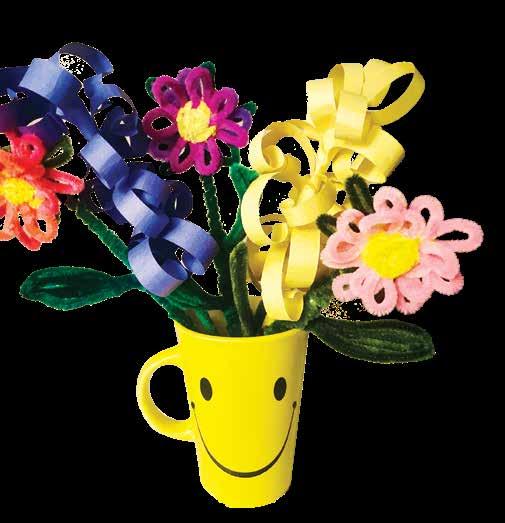 Materials: Assorted chenille stems (pipe cleaners) in some of Mom’s favorite colors, as well as yellow and green, some wooden skewers, and scissors.