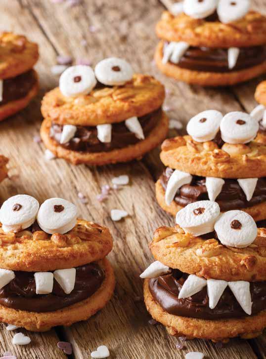Fall is in the Air Fall is in the air, and we’ve baked up some tasty treats. Our new fall flavors include Espresso, Pumpkin Chocolate Chip, and Molasses Chai! For a spooktacular Halloween treat, we have Frosted Sugar cookies in fun pumpkin shapes and our Graveyard cookie topped with a gummy worm! Your little ghosts will gobble them up! Call us to place an order or stop by either of our locations! Mary’s Mountain Cookies. Downtown at 605-275-0060. South Cliff at 605-275-0062. www.siouxfallscookies.com.