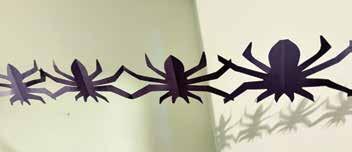 Cut carefully along your outline, leaving the folded edge intact. When you unfold the strip, you’ll reveal a chain of connected spiders!
