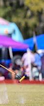 The mallet, made of a bamboo shaft with a hardwood head, is the instrument each player uses to hit the ball. The mallet can also be used to “hook” an opponent’s mallet to stop them from successfully hitting the ball down the field.