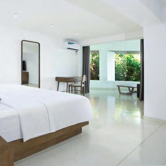 Offering seven luxurious ocean-facing suites, with a modern and minimalist design created to reflect the delicate beauty of the nearby coral reefs. Clean lines, neutral colours and natural materials are complimented by endless ocean views and seamlessly blur the boundary between indoor and outdoor spaces. The seven-suite property evokes the tranquillity of the ocean with a palette consisting of soft white, sandy beige and oceanic blues. Soft linens, woven rattan and natural stone textures inspired by coral are incorporated throughout the property.