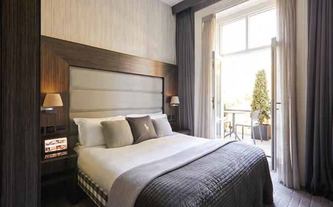 Rooms feature Smartglass bathroom walls that transform from clear to opaque at the touch of a button, electronically adjustable beds, Apple TVs, and powered curtains. Invisible technologies, such as super-fast WiFi and advanced underfloor heating, work behind the scenes to optimize comfort without anyone noticing.