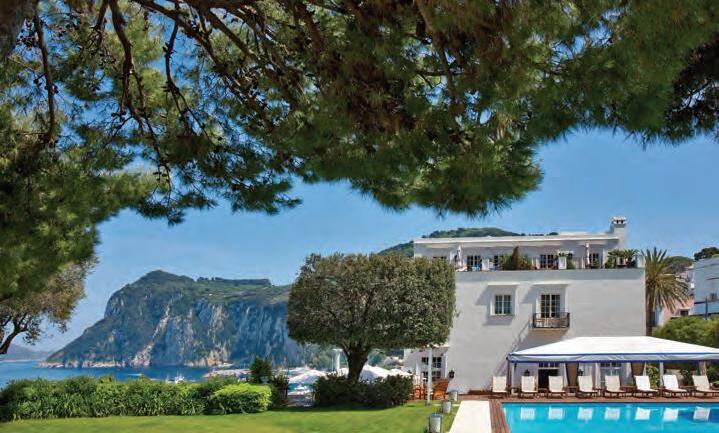 Each of the hotel’s 22 guest rooms offer unobstructed views of the Neapolitan gulf, and have been designed by the Florentine architect, Michele Bönan. The luxurious accommodations feature décor that perfectly juxtapose impressions reminiscent of Palm Beach and the Hamptons, and neoclassical nuances superimposed on the Cerio style. While on property, guests can take a relaxing a stroll in the idyllic garden, bursting with the aromas from its lemon trees and shaded by opulent palms; dive in the large, heated open-air swimming pool (one of the largest in Capri); or relax by the beach, with direct access from the hotel.
