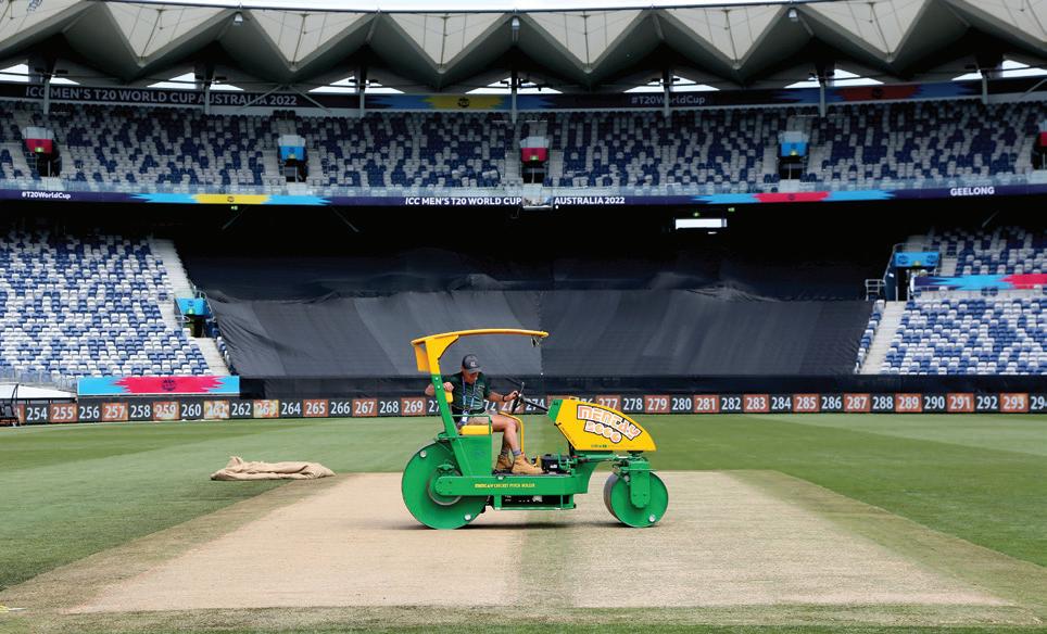 2 AUSTRALIAN TURFGRASS MANAGEMENT 24.5 8 COVER STORY ON THE RIGHT WICKET 8 2022 will be a year to remember for Liam Kirkman and Joel Ives. The Green Options curators, who oversee turf operations at GMHBA Stadium (Kardinia Park), not only saw Geelong lift the AFL Premiership trophy for the tenth time in the club’s history, but also had the honour of hosting the opening game of the ICC T20 World Cup in mid-October. ATM editor Brett Robinson catches up with Kardinia’s dynamic duo to see how they fared under the international spotlight. Cover: