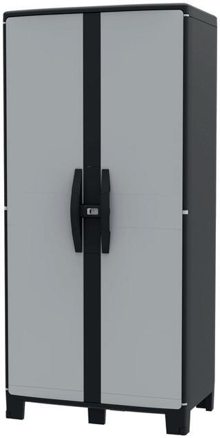 Armoire polyvalente étanche en plastique gris et noir idéale pour organiser votre cave, votre abri de jardin ou votre balcon (utilisation intérieure et extérieure possible). Pieds réglables et 3 étagères solides qui supportent chacune 30 kg. Dim : l. 85 x H.180 x P. 52 cm. Réf. 82021098. 139.00€