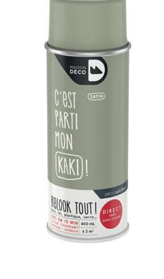 Permet de customiser et rénover vos meubles et objets de décoration. Coloris Kaki. Ultra-couvrante, elle s’applique directement sans sous-couche sur tous types de support. Couvre environ 2 m². Réf. 80124461. 14.90€ 0