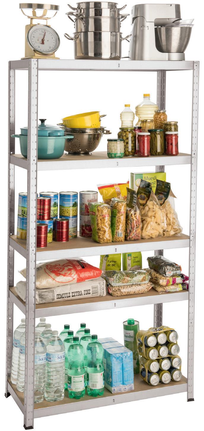 En métal galvanisé, 5 tablettes en aggloméré. Charge maximale par tablette : 175 kg. Dim. H 176 x L 90 x P 40 cm. A monter soi-même. Réf. 82152820. / 59.90€ 49.90€ dont 1,15€ d’éco-part. au recyclage des meubles