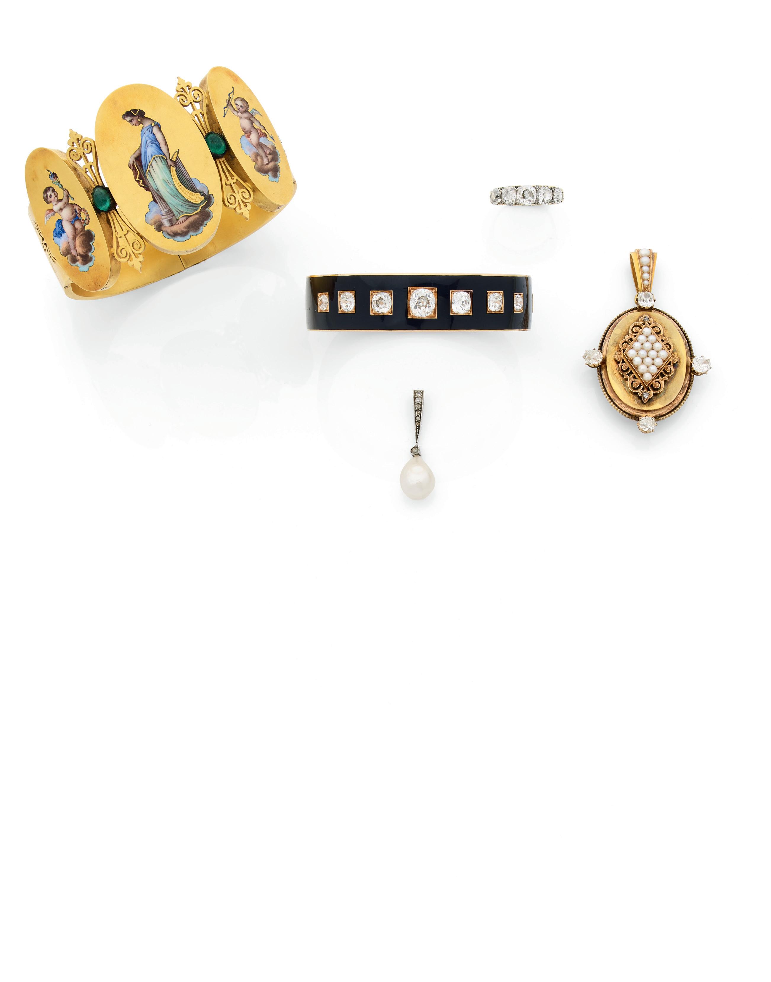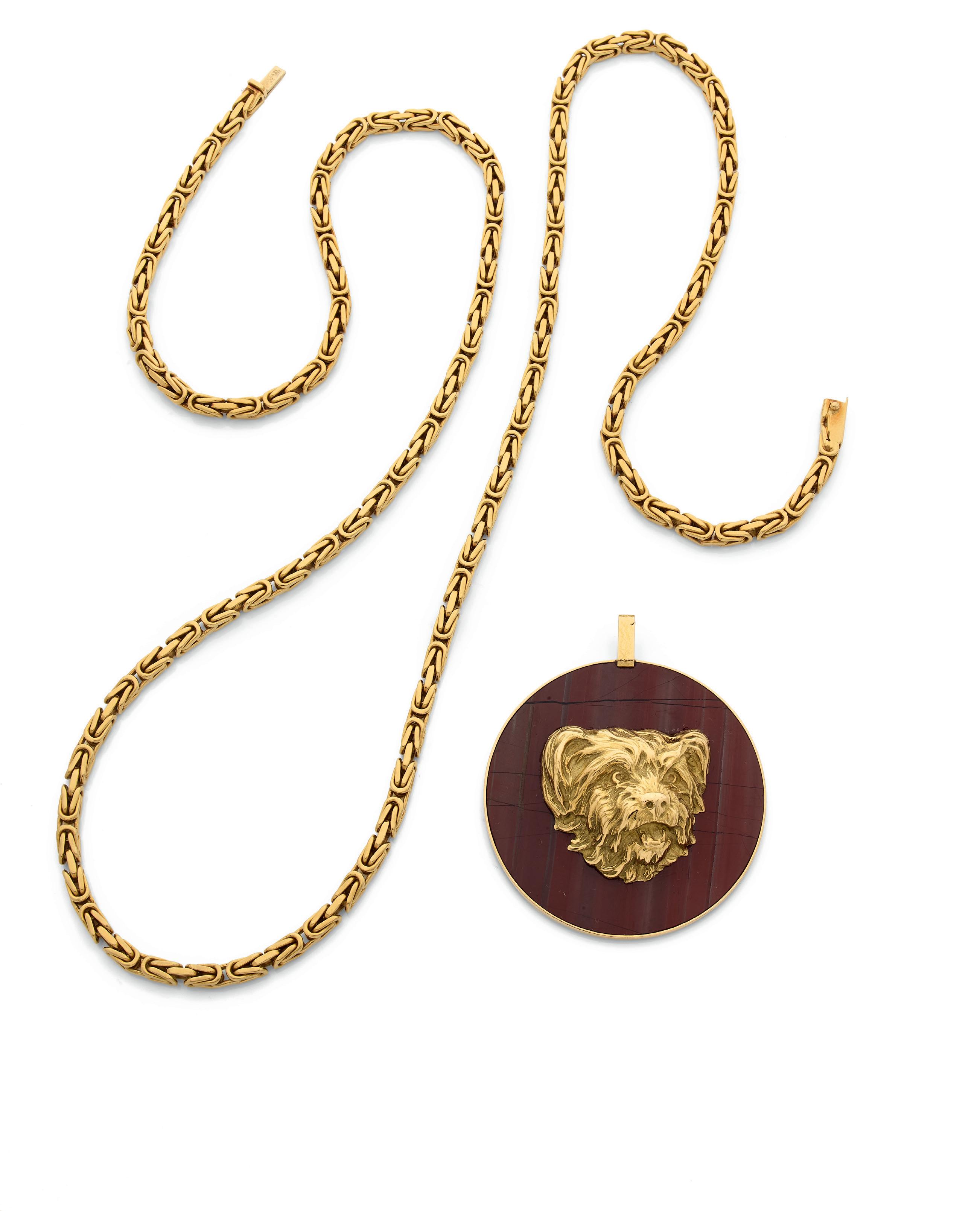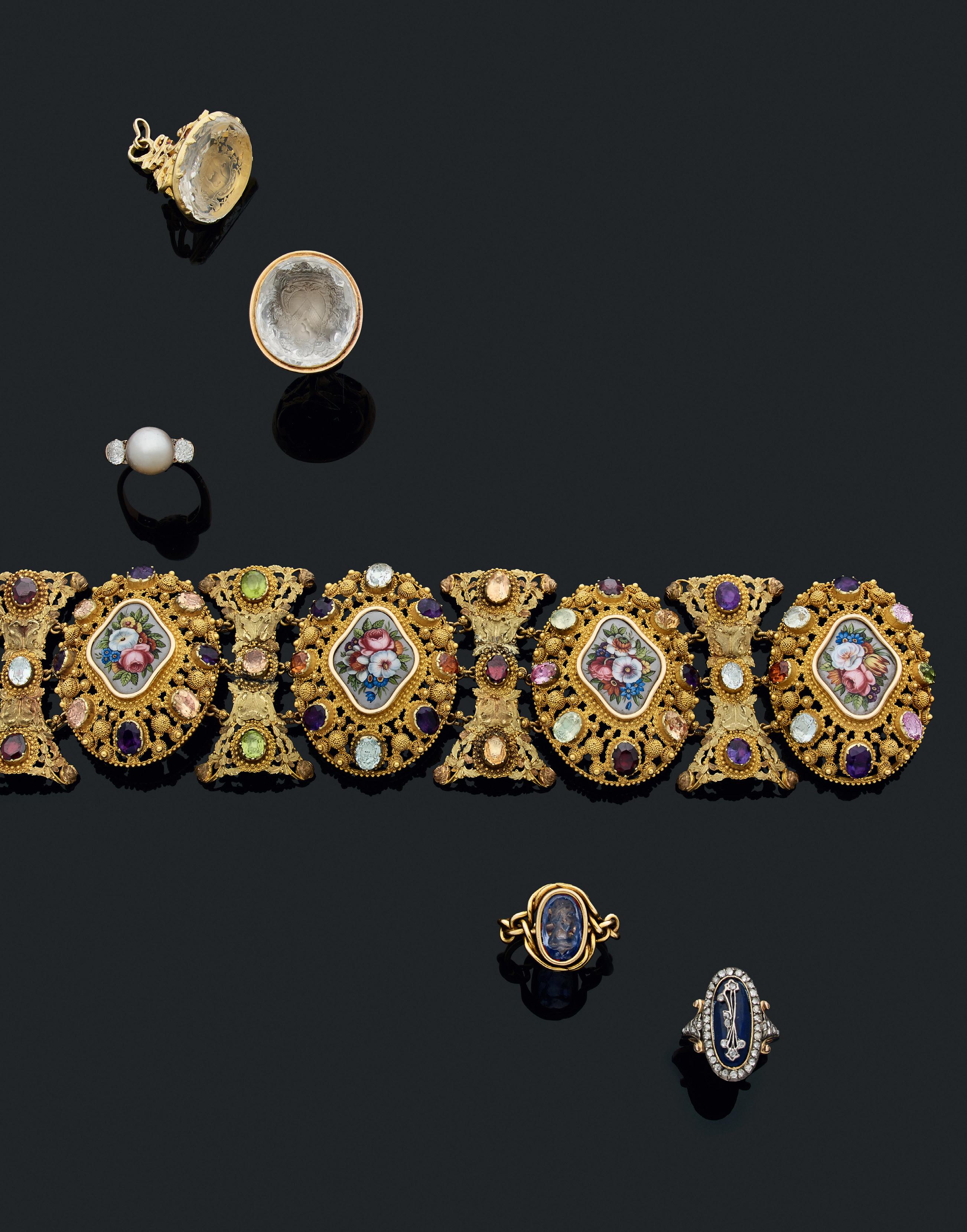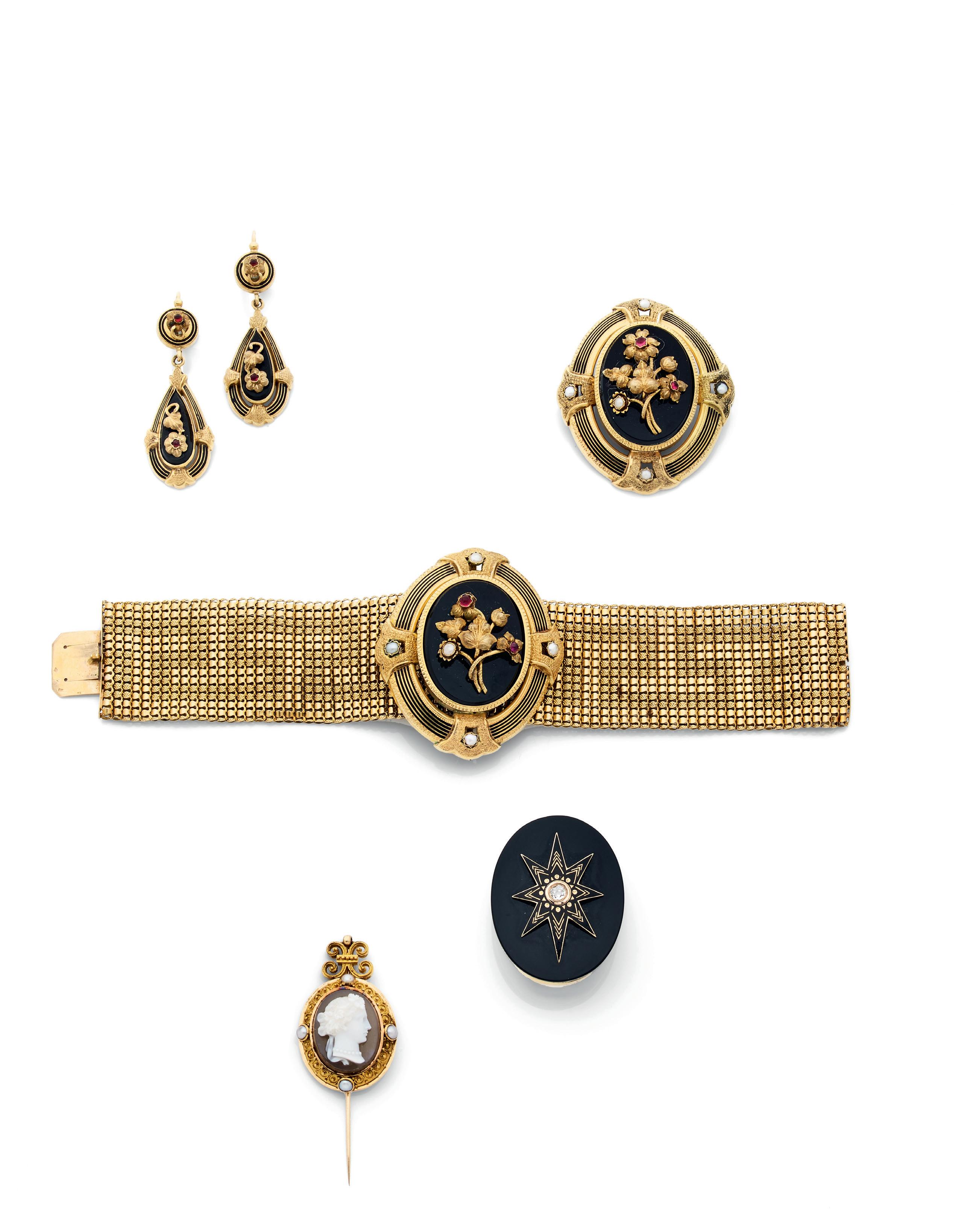 Bracelet orné d'un médaillon, broche et pendants d'oreilles