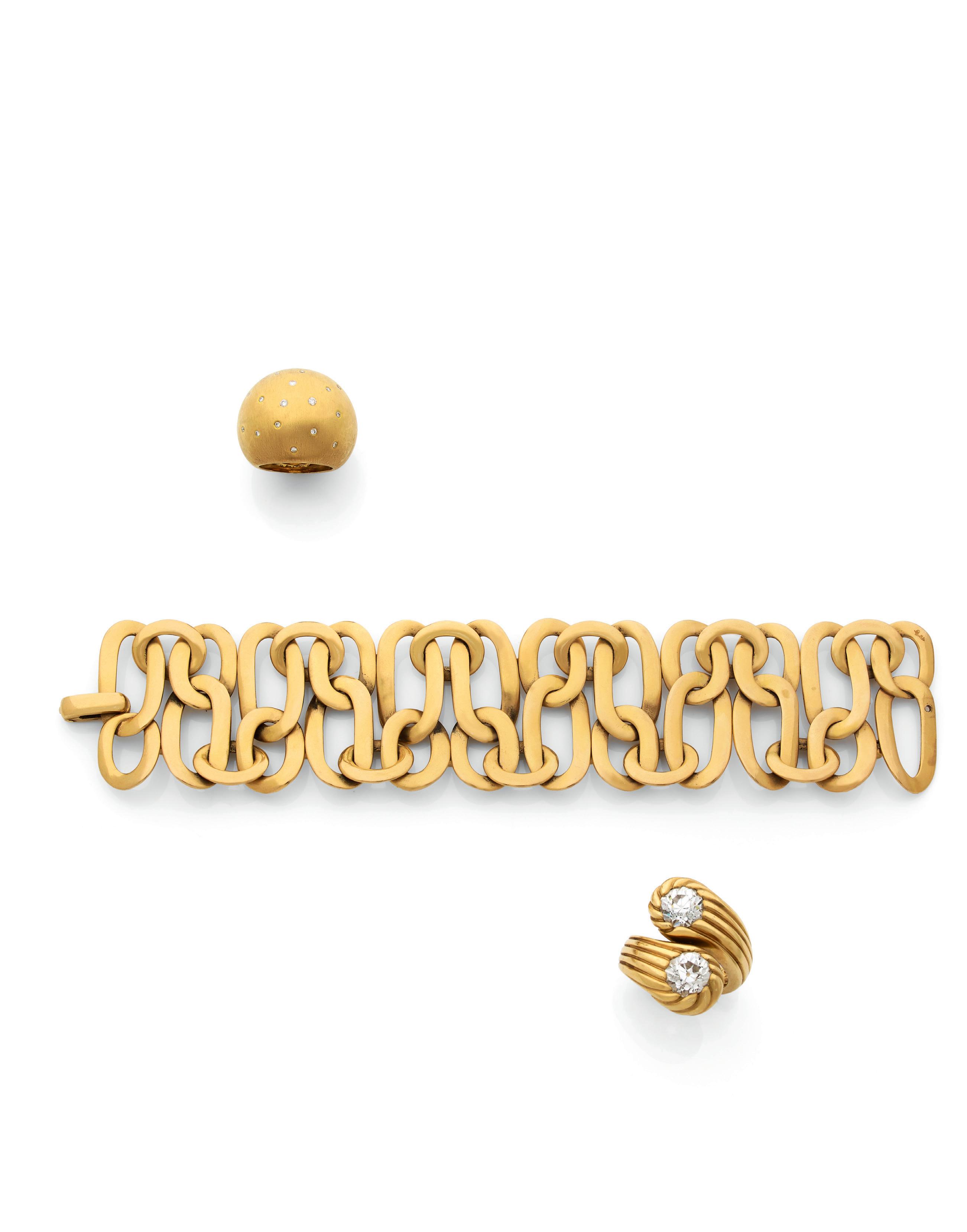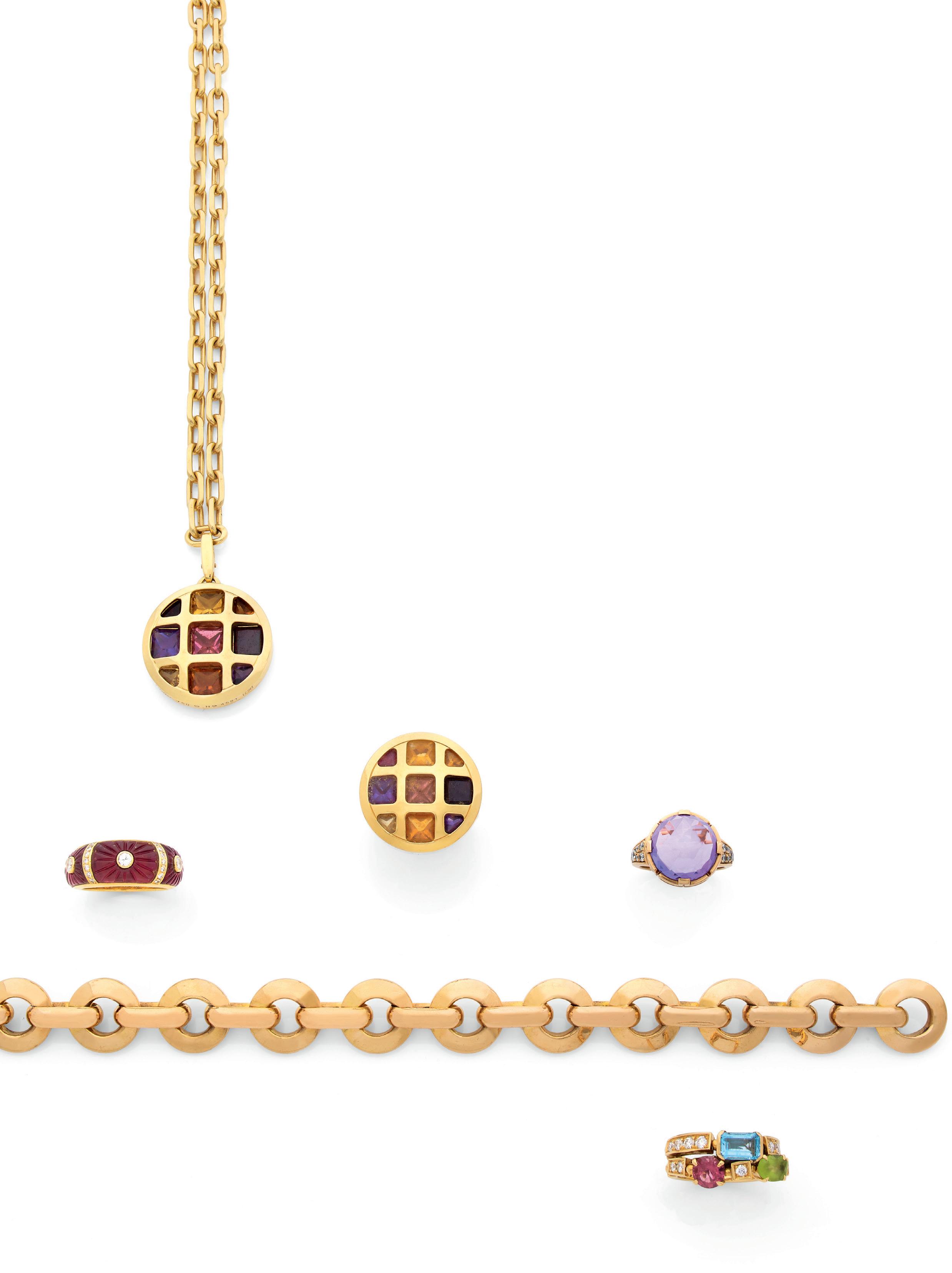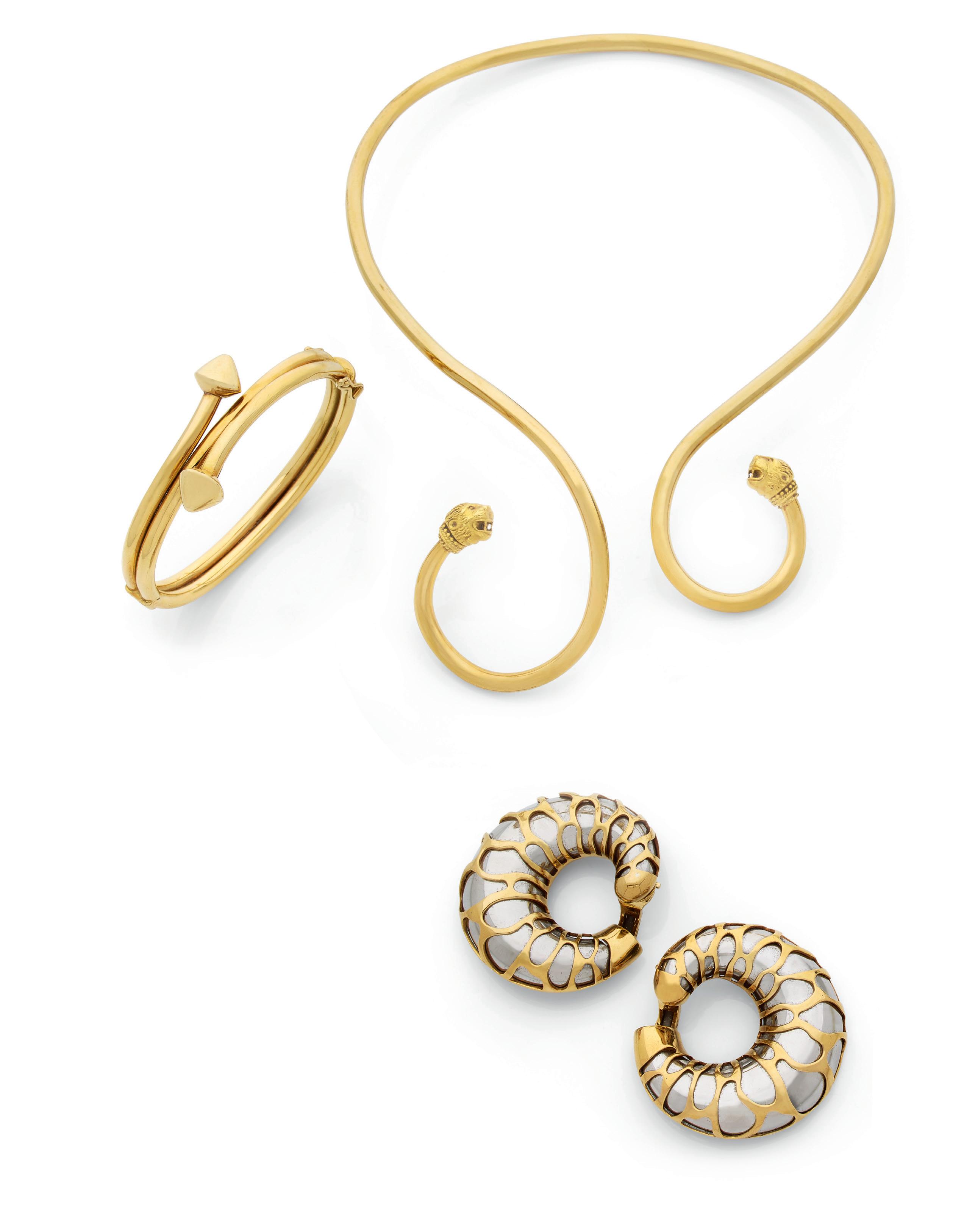 Bracelet orné d'un médaillon, broche et pendants d'oreilles