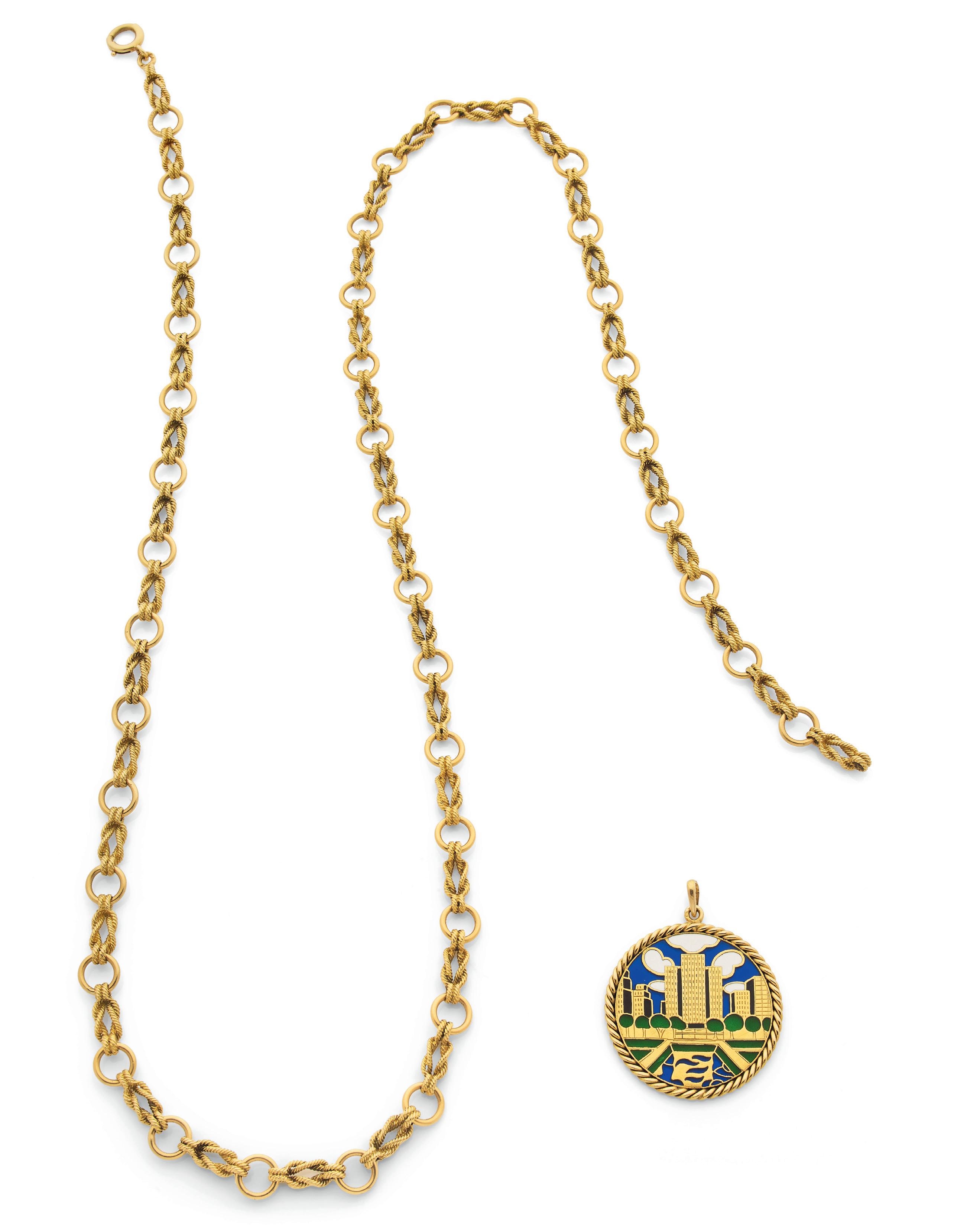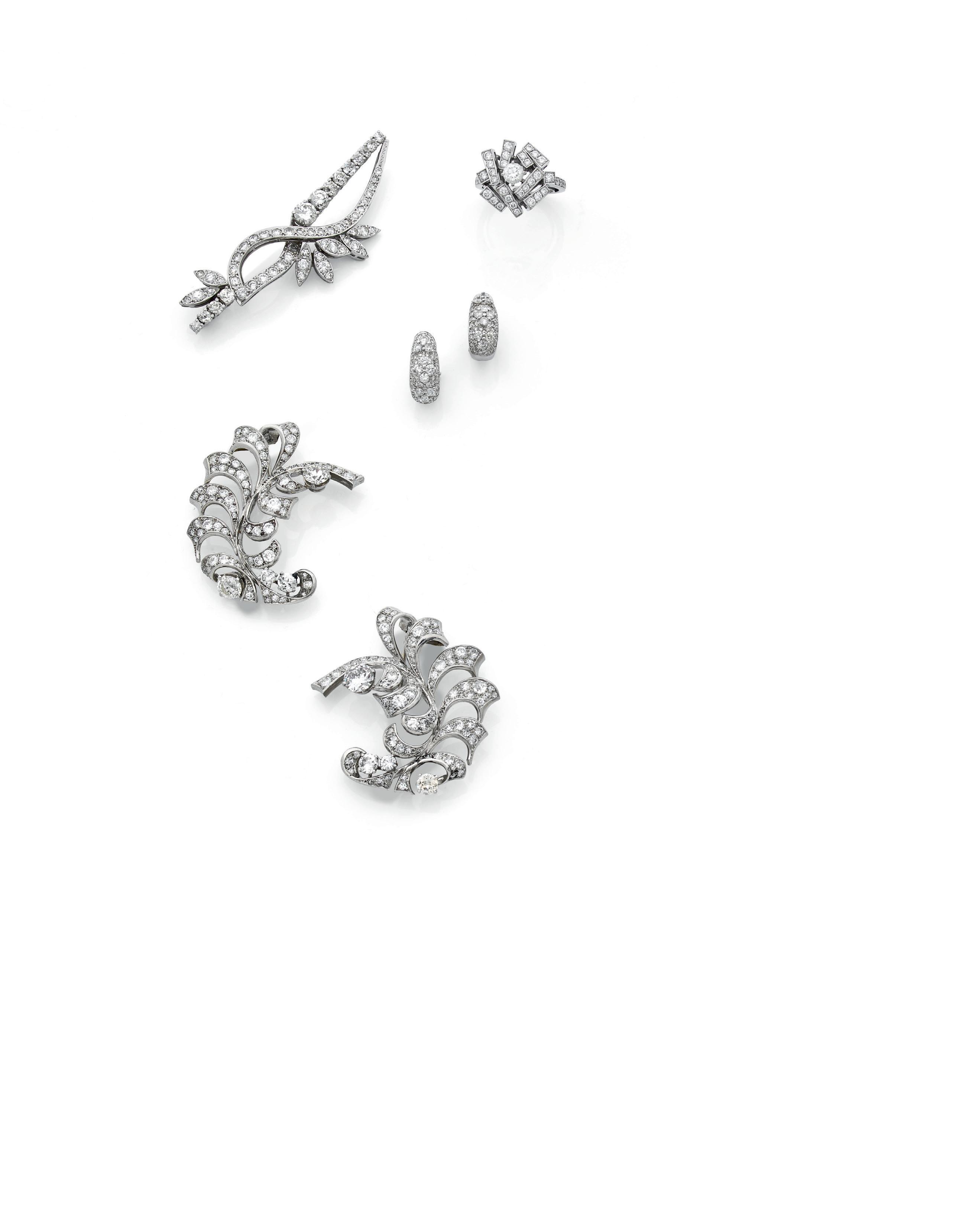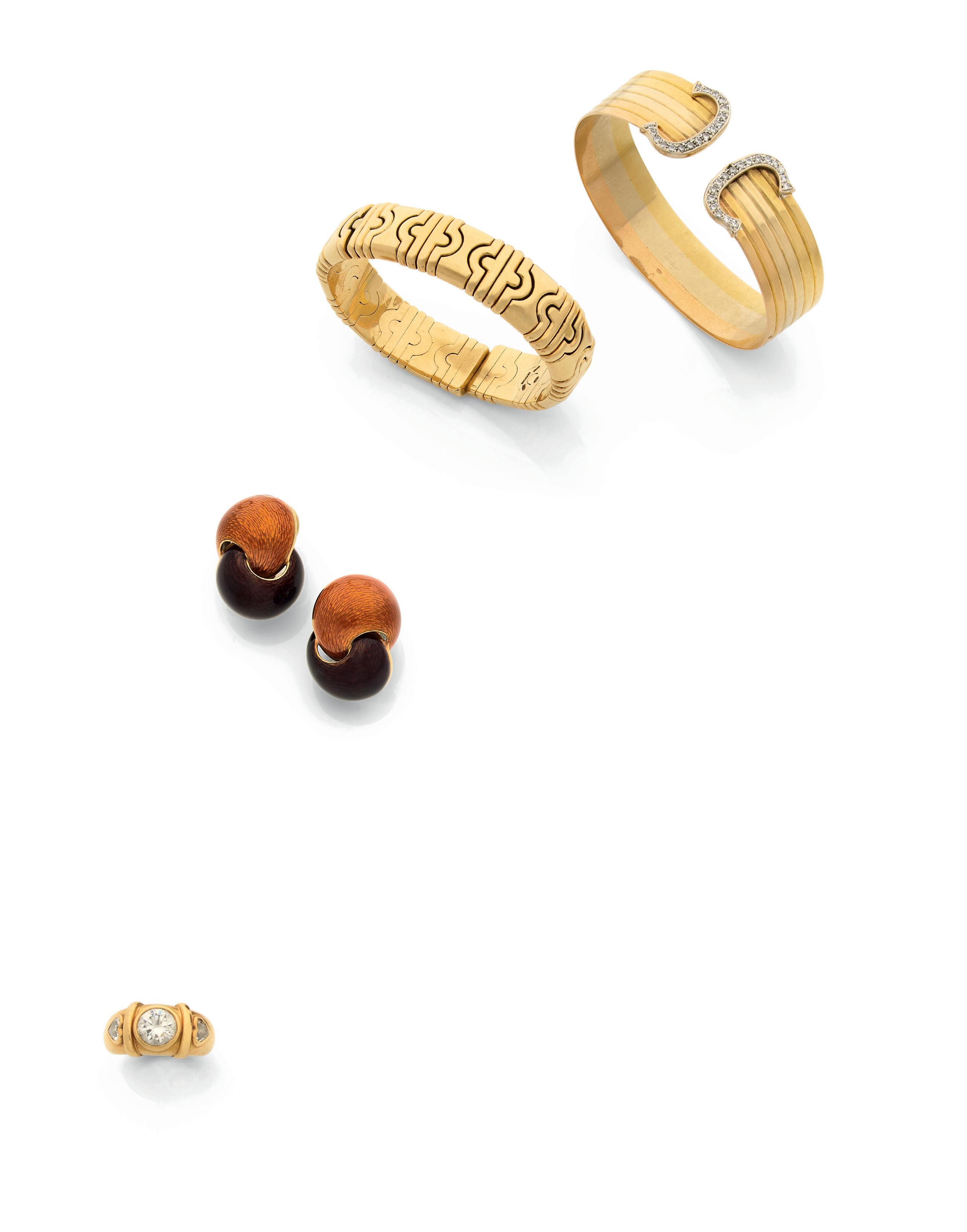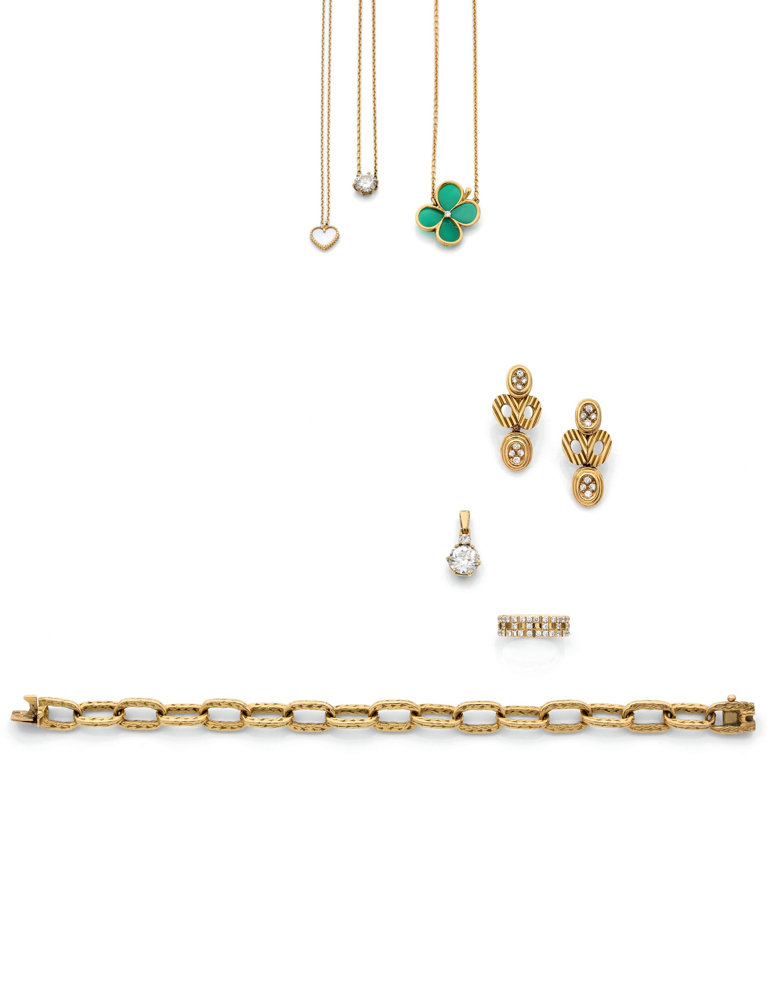 Bracelet orné d'un médaillon, broche et pendants d'oreilles