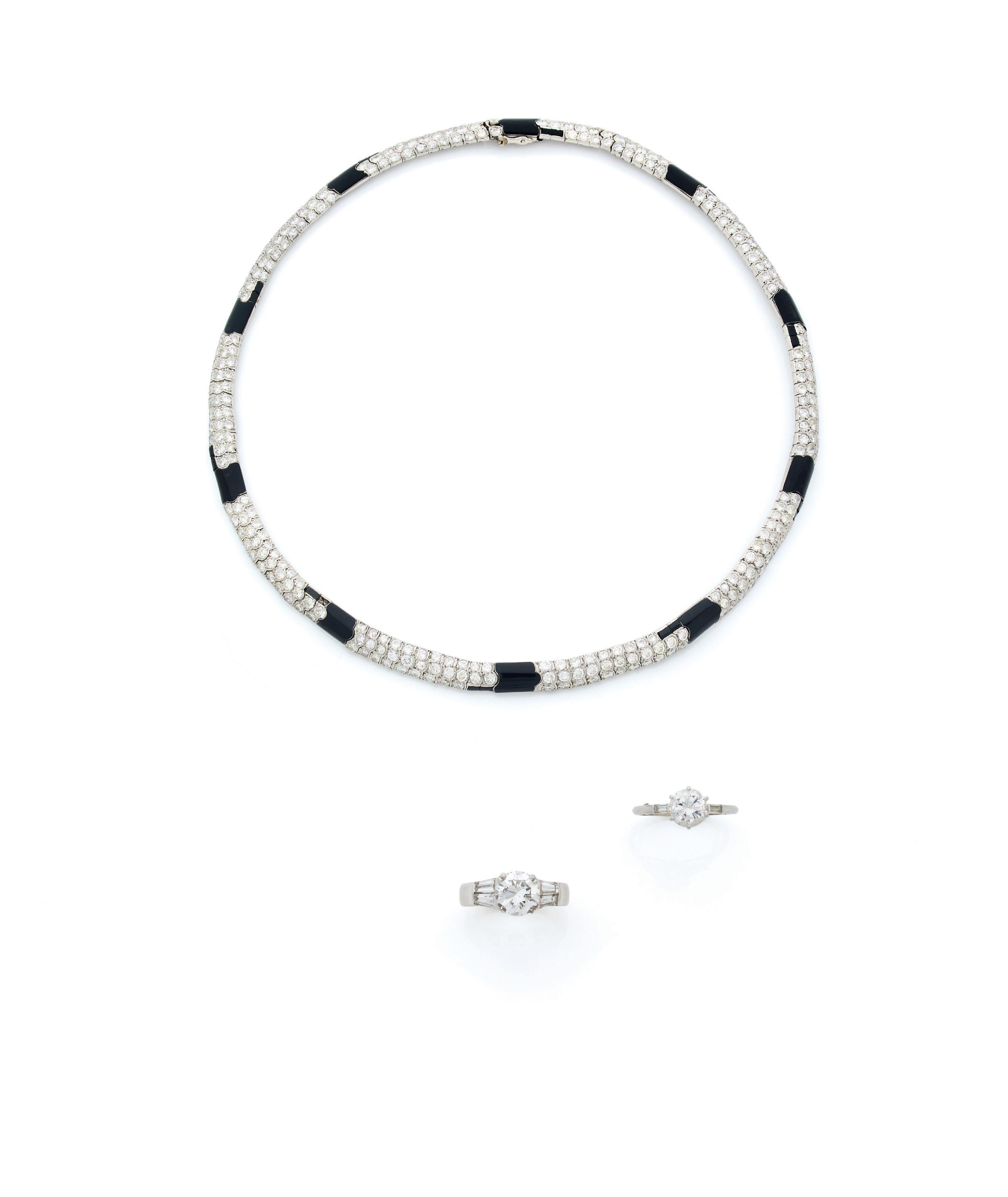 Onyx, émail noir et diamant taille ancienne Or 18k (750)