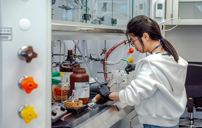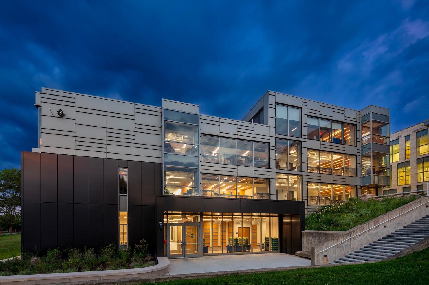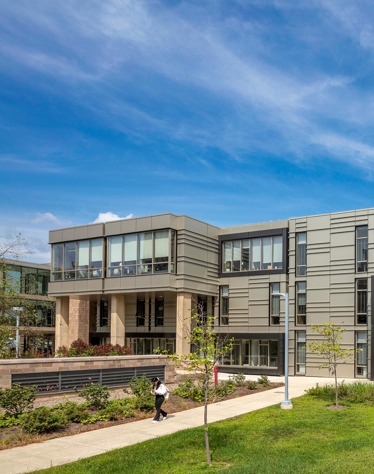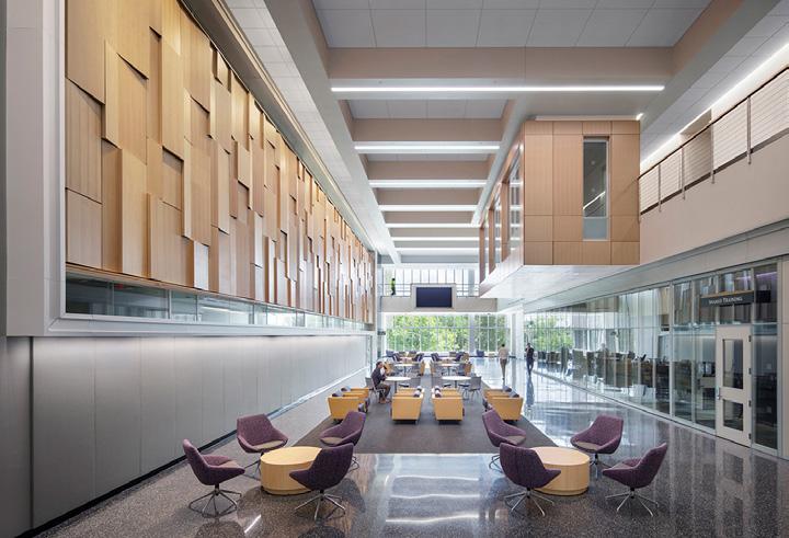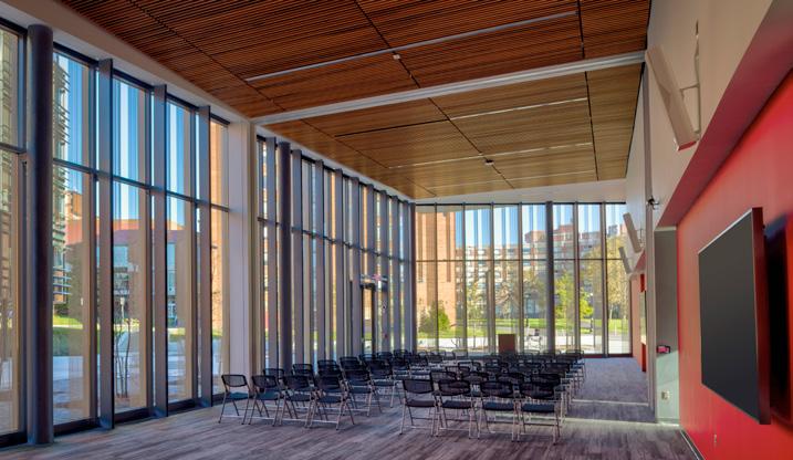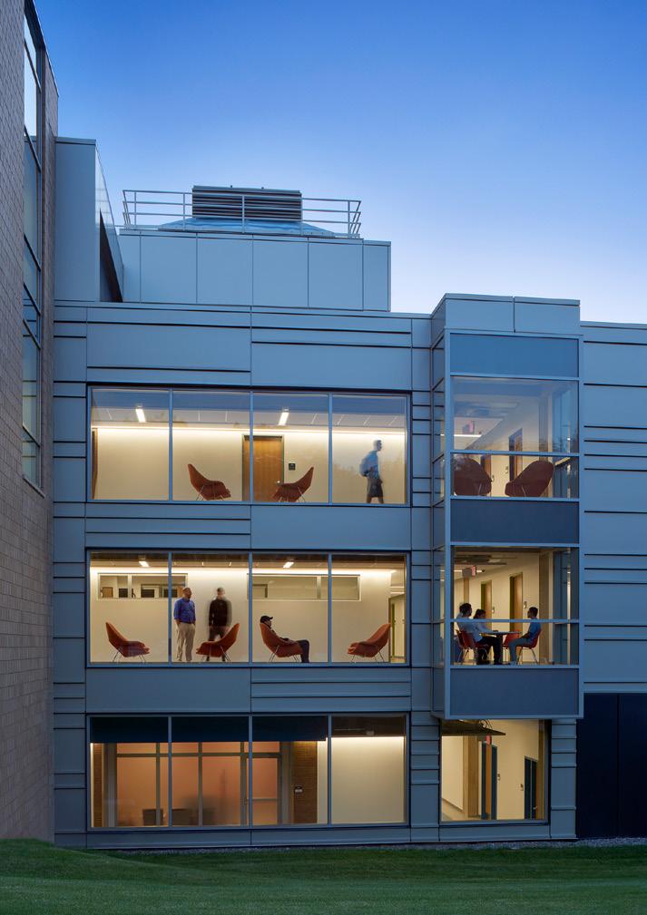 creates a vibrant sense of activity and promotes collaboration among different disciplines. The design also incorporates “windows into science,” interior windows into research laboratories that also function as display cases and showcase the innovative research taking place within to promote interest in the sciences.