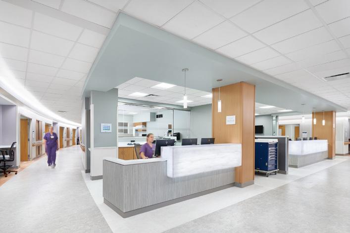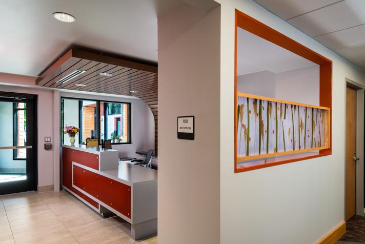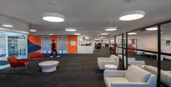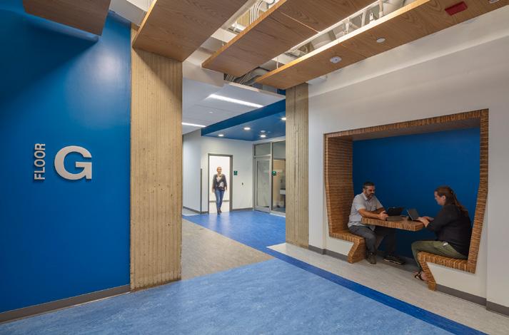New and reimagined entry points create more effective wayfinding, enhanced by the interior design and finish strategy to highlight each research suite and help users navigate the building. Collaboration nooks and lounge spaces with comfortable and flexible seating and plenty of places to plug in along the corridors activate the building’s common spaces and provide opportunities for interdisciplinary collaboration. These corridor interventions also open up the spaces to bring natural light deep into the interior of the building. l