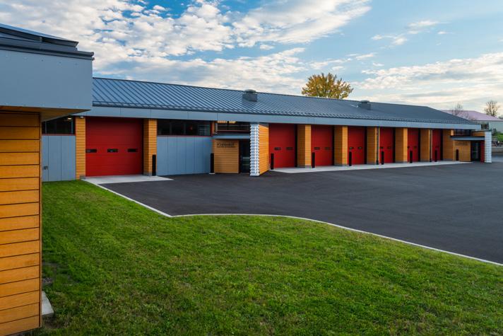 features a vestibule designed to establish a welcoming entry to the building. The new main entrance is marked by a distinctive lighted metal feature, which is repeated at each shop entrance, defining the facility’s multiple functions. The new site features improved traffic flow, defined parking, and a new asphalt parking lot, all of which create a welcoming experience for staff and visitors. As part of the deep energy retrofit, outdated mechanical, electrical, and plumbing systems, many of which were original to the building, were upgraded. The foundation received new waterproofing, drainage, insulation, and cladding.