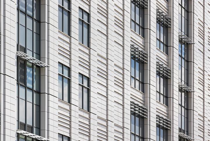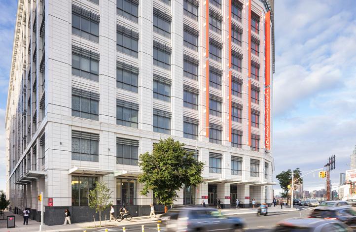 The CUNY LaGuardia Community College Façade and Lobby Renovation Project transformed the 100-year-old, one million square-foot Center III Building in Long Island City into a structure that aims to support the activities of the College for the next century. The Project involved two major scopes of work: the complete replacement of the exterior cladding of the building, inclusive of all aspects of the ground floor, sidewalks, and signature billboard signage at the top of the building; and a reinvention of the entrance sequence and lobby of a building that serves hundreds of occupants daily.