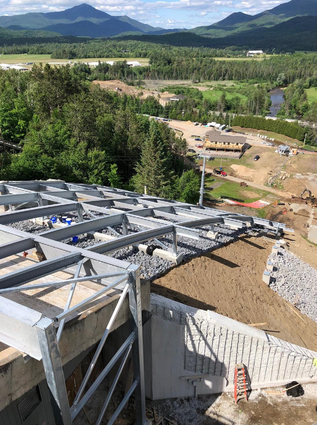 The Olympic Jumping Complex Outrun Reconstruction Project, also known as ‘the Project,’ is part of a 70-million dollar capital improvement by the New York State Olympic Regional Development Authority. The Project is in preparation for the upcoming 2023 Winter World University Games. Reconstructed in multiple phases, the Project included the renovation of the glass-enclosed elevator on the existing 120-meter jump, including replacement of the elevator and curtainwall; structural steel improvements and frost rail installation on the 90-meter and 120-meter jumps; construction of new 10-meter, 20-meter, and 40-meter jumps; installation of summer jumping surface on the existing and new jumps; installation of a new eight-person gondola that is ADA-compliant for transporting people and equipment from the base lodge to the jump tower and zipline launch deck; construction of the zipline park, design for all skill levels including a course that is anticipated to reach speeds of 60-miles-per-hour with a 30-degree decline; and site work and