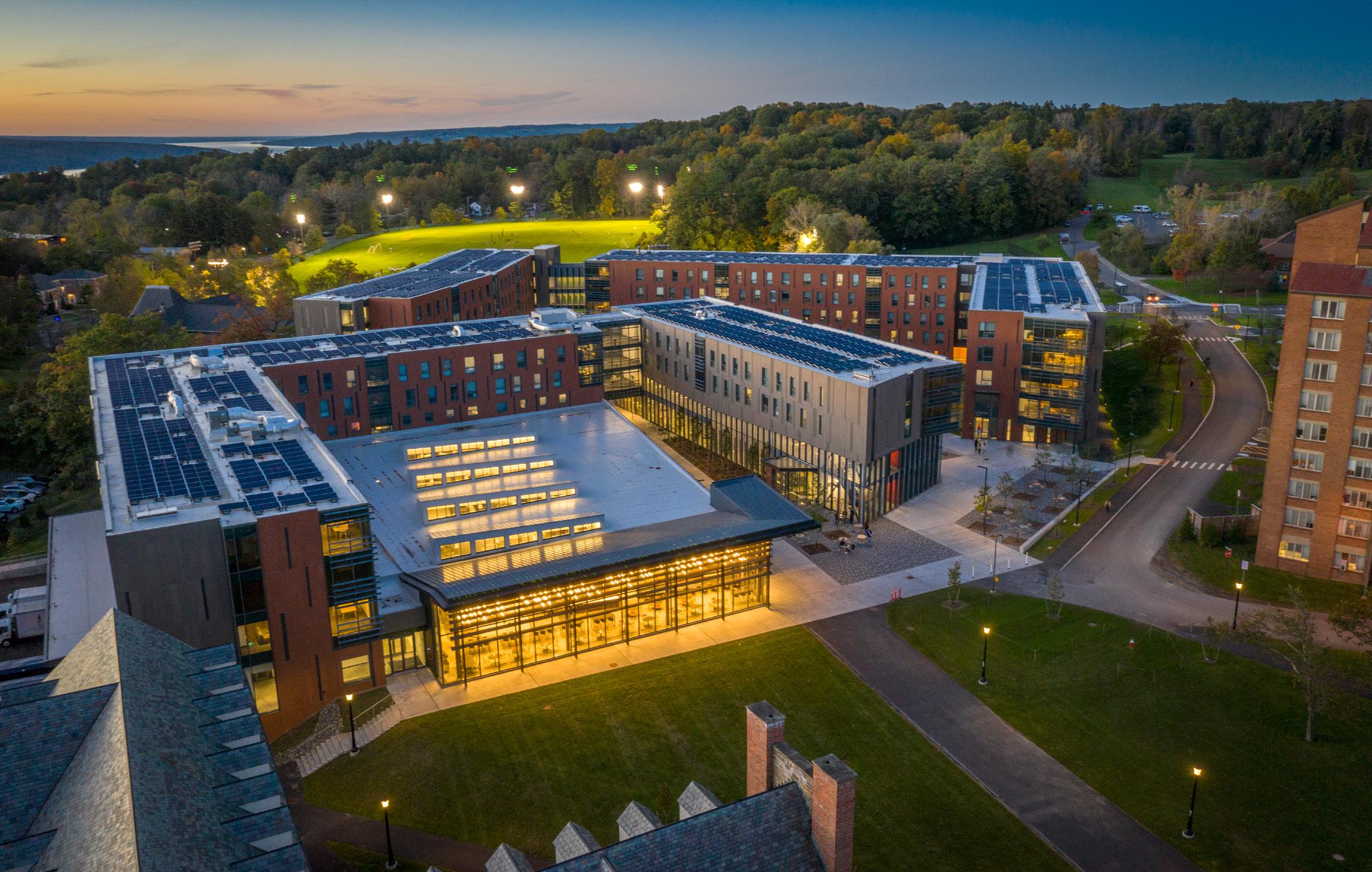 The fast-tracked project provides over 2,000 new beds for first year and sophomore students on Cornell’s residential North Campus. Phase 1 included the construction of two residence halls offering over 800 beds and a centrally located, attached dining hall.