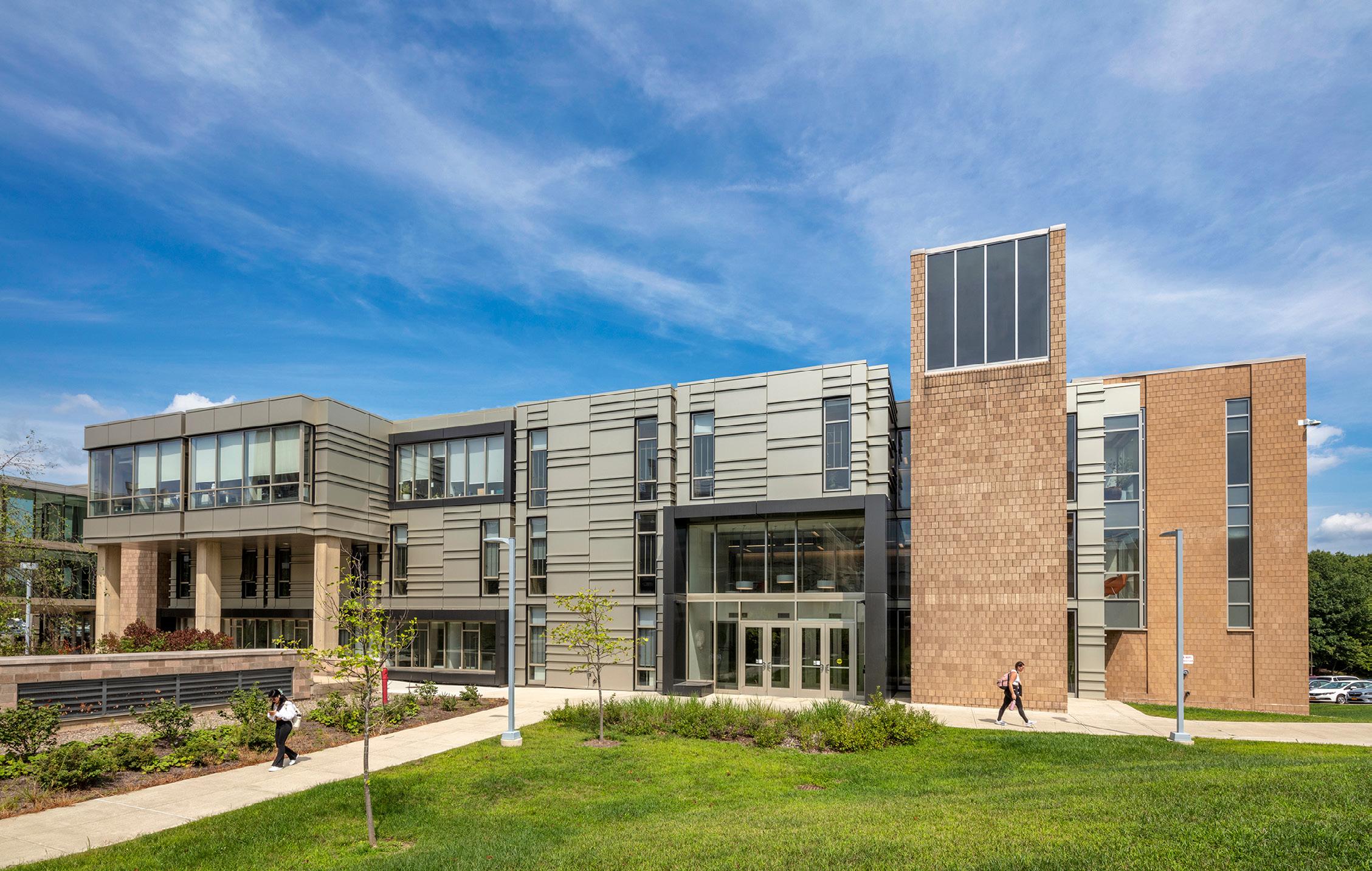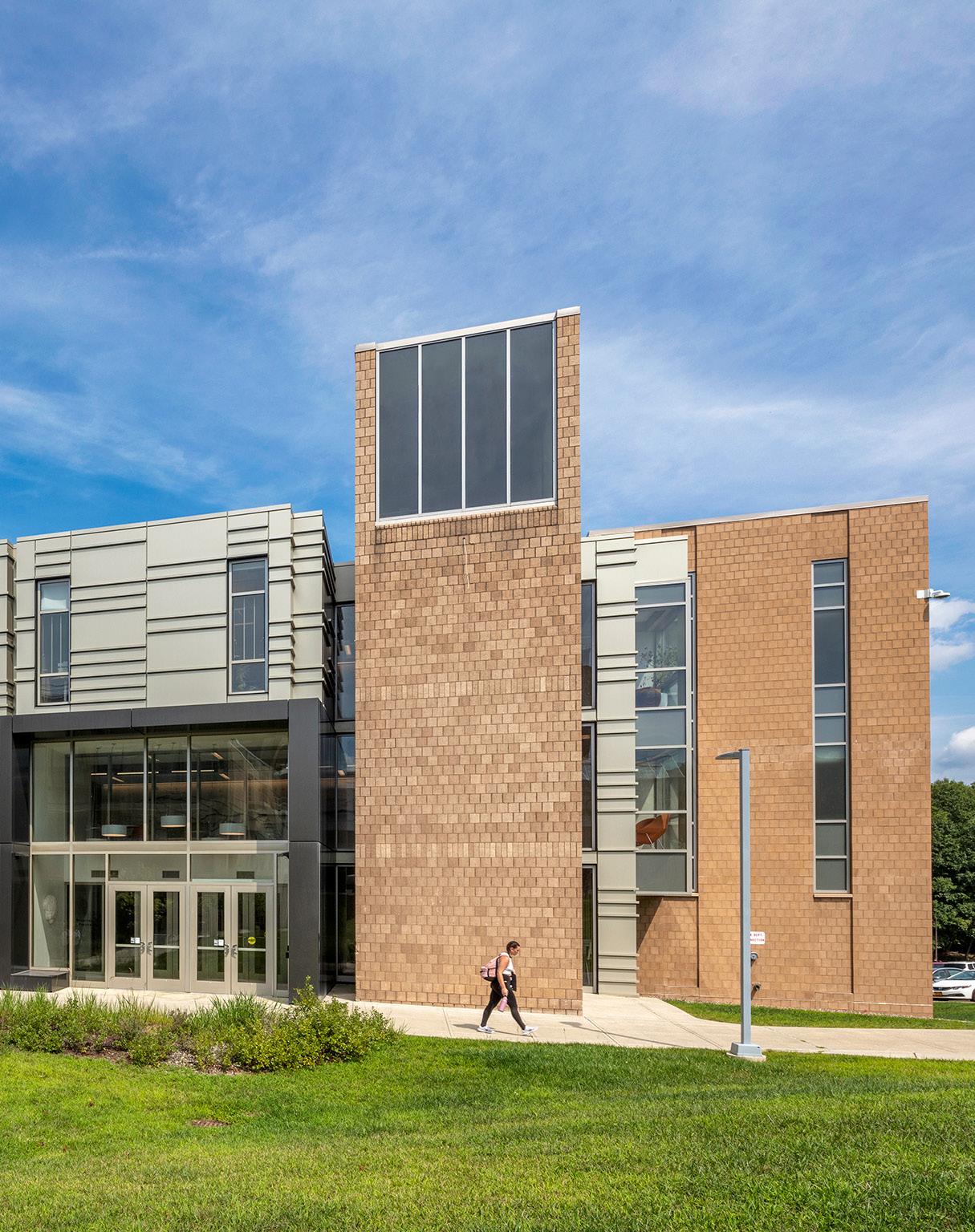 The first building that visitors encounter when entering the Binghamton University campus was a tired, partially vacant 1970’s structure known as Science IV. The masonry façade was failing, the interiors were dated and nonfunctional, and campus noted that the architecture gave a foreboding first impression to visitors. Binghamton University, in conjunction with the State University Construction Fund, commissioned our firm to re-envision the building as a new campus icon that welcomes visitors to the campus and sciences complex, in a modern, cohesive and energy efficient way.