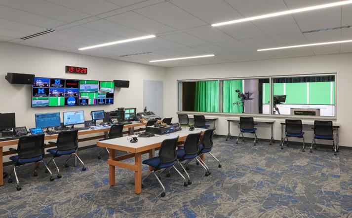 fully equipped professional level video production studio with a classroom-sized control room for video production design classes. Exteriorly, The addition features a green roof and a curvilinear design of that wraps around the drop off loop and presents an updated first impression for this innovative High School.