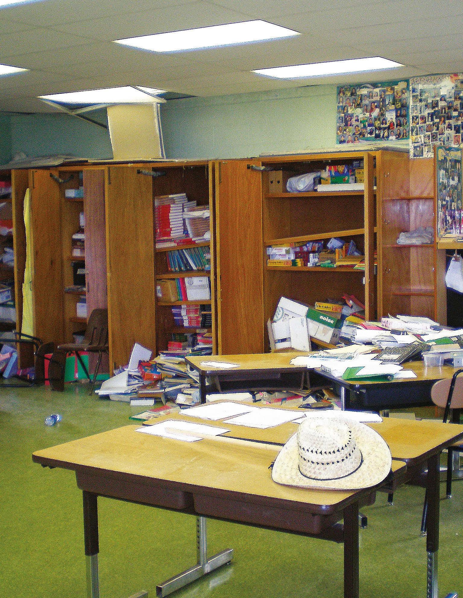 • If you feel an earthquake while you are at school, home or an indoor workplace, drop to the floor and seek shelter under a sturdy desk or table. Avoid windows,