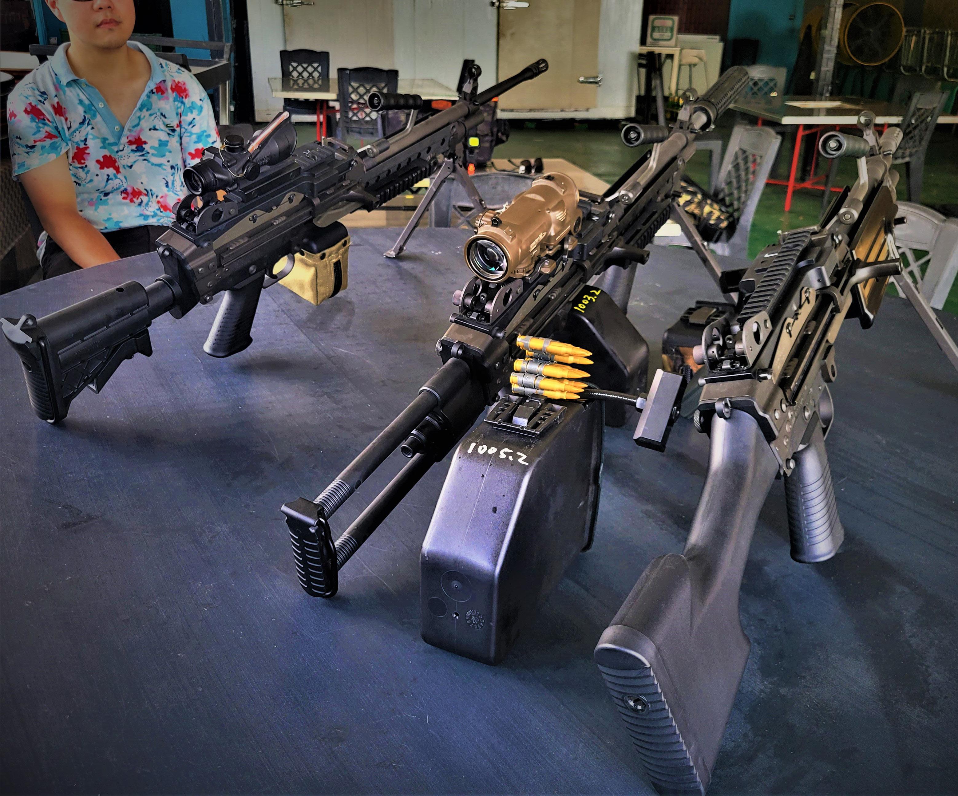 VFC HAD BROUGHT ALONG NOT ONE BUT FIVE OF THEIR LATEST M249 GBB LMG PROTOTYPES IN AN ARRAY OF CONFIGURATIONS FOR SOME HEAVY DUTY IN THE FIELD TESTING! THIS WAS TO BE CARRIED OUT BY THE STAFF ON SITE, AND ALLOWED THE PLAYERS TO GET HANDS ON WITH THEM