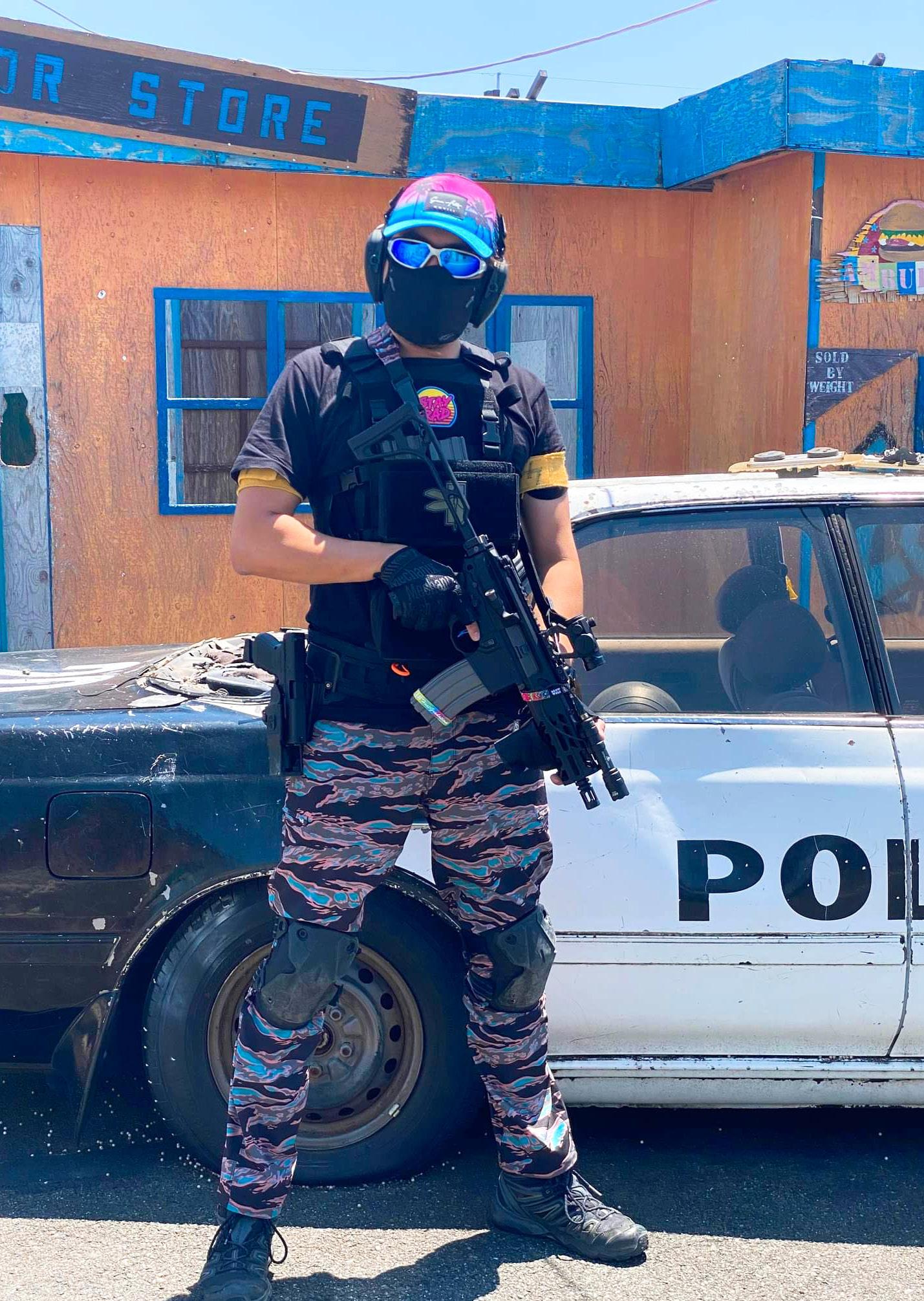 After that short walk to the field, you’ll find yourself in the centre of a strange mix of rice paddies, industrial complexes and suburban lots. The field is fully concrete and mainly consists of plywood structures painted over with real-world business logos for a more city-like feeling. This is contrast to the vast majority of Japanese fields with dirt or gravel ground and shabby plywood walls set up to resemble cover. Laggoon city actually feels like a few blocks of a real city, satisfying all your fantasies of a “HEAT-style” street shootout. The are fictional versions of bars, 7/11 conveniences stores, a gun shop, sushi shops, burger joints, a police station with jail cells, and more. Adding to the atmosphere are several police cruisers and broken-down cars for a complete city feel. This field also features multiple hidden nooks and crannies for players to surprise their opponents from…