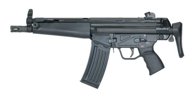 Basically the HK53 is an MP5 that’s been slightly stretched to chamber 5.56x45 in real-steel format, and it continued to follow the original model numbering nomenclature, the MP5 earlier being known as the HK54 (5 for the platform type code and 4 for the 9mm calibre code) before its rebranding. The HK53 is H&K’s equivalent ‘submachine gun’ sized (5 for the platform type code, 3 for the calibre code) competitor to the AR platform, but in 5.56, itself derived from the longer HK33 which saw previous widespread adoption by various militaries that didn’t end up adopting the US produced AR variants, as well as numerous security services worldwide, including regularly seeing it in the hands of Northern Ireland’s RUC/PSNI making it somewhat close to my heart.