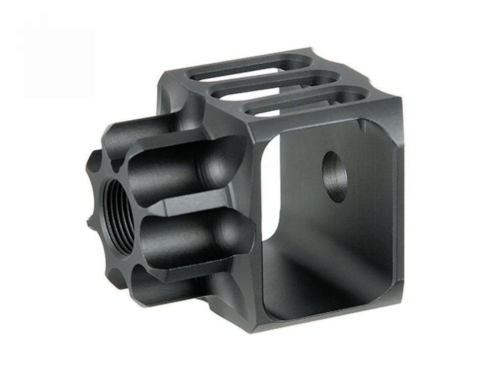 Using their latest programmable module reconfigured slightly as a Maxim 9 specific unit, it has all the modes and functions of the Blaster you’ve no doubt already seen adorning the ends of many platforms at your local sites or in videos. The front facing faux-muzzle-flash-generating LEDs and the internal tracer effect banks of LEDs with a variety of colours to give you myriad options in terms of the setup and personalisation of your own Krytac Acetech setup. This can be installed in the stock format pistol using the threaded insert that locks the unit onto the internal rear face of the silencer cavity, and switching out the front muzzle cowling for the wider aperture one allows for the muzzle flash to reach out from within during firing; this is accentuated thanks to the typical gas discharge cloud which really adds to the realism and light show effect!