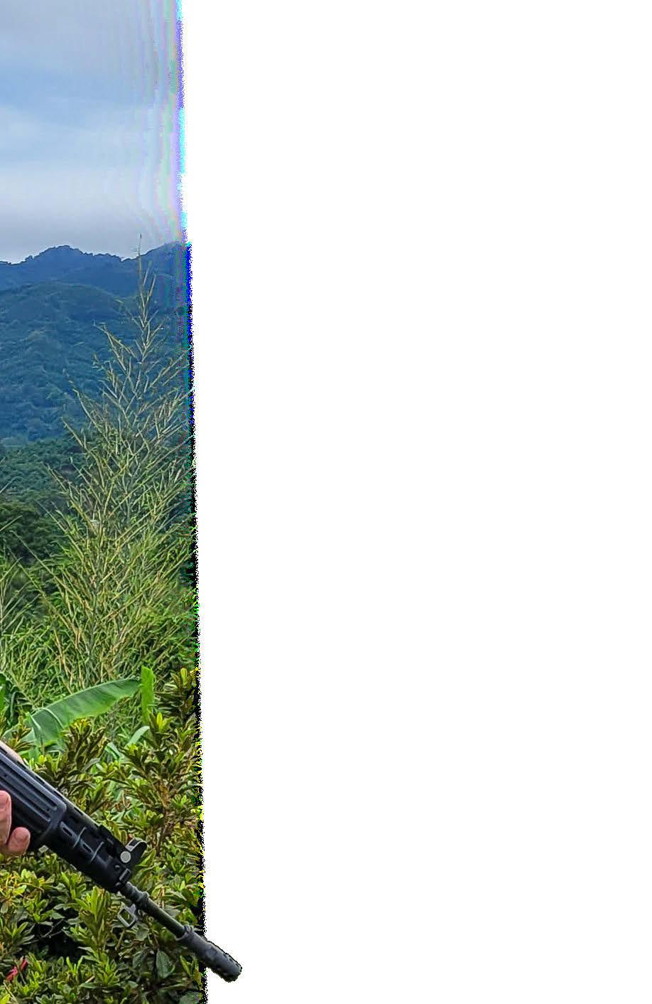 At the top of this long slog up the hill and around a hairpin we regrouped, took on water and snacks; getting up the hill lugging all our gear and constantly fighting the foliage and gravity pulling us back down with poor footing then getting another few hundred metres up to the high ground overlooking the clearing somewhat winded us all! We rested and reloaded for a few minutes before moving out further along the high trail winding back down through the top end of the same bamboo patch our team leader had dived into previously, moving down the hill towards