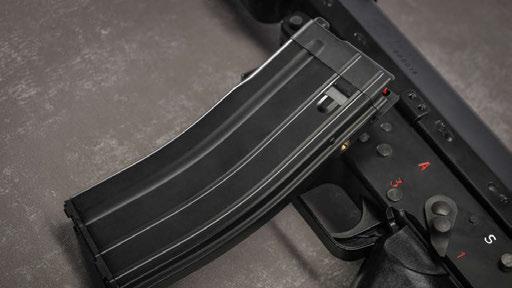 alloy construction rather than the more typical zincalloy industry standard, as well as being Cerakotefinished to assist in recovery from cool down. They are available in 20 or 30 BB variants as well as green gas or CO2 powered systems to suit your local climate or playing regulations, and ammunition capacity or overall footprint reduction requirements. They come supplied as standard with decent thickness rubberised base plate ‘feet’ that help absorb the worst of impacts if they are dropped, or otherwise provide a good gripping assist for when retrieving them from pouches and feeding them into the gun’s slightly flared magazine well.