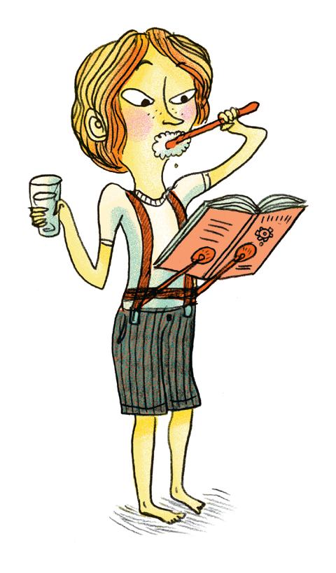 Within these pages you’ll find a carefully curated collection of observations . . . specifically, 101 ways to read a book. The illustrations document the varied, and sometimes unpredictable, effects of reading on human beings. However, it should be noted that certain featured poses should only be attempted by adults under the close supervision of a child.