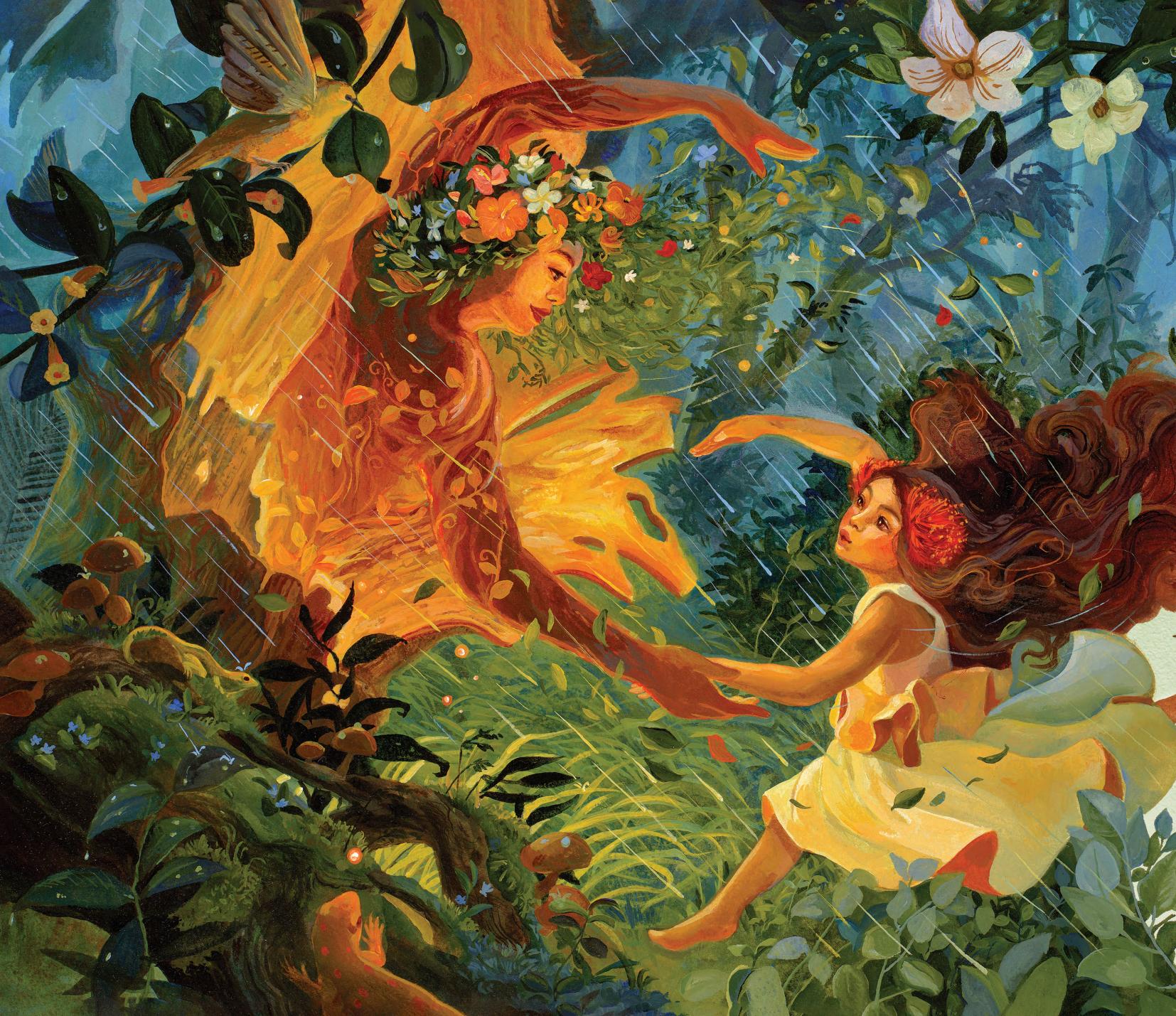 Yes, they twisted, transformed to a beautiful she! And a figure so fair bounded down from a tree.