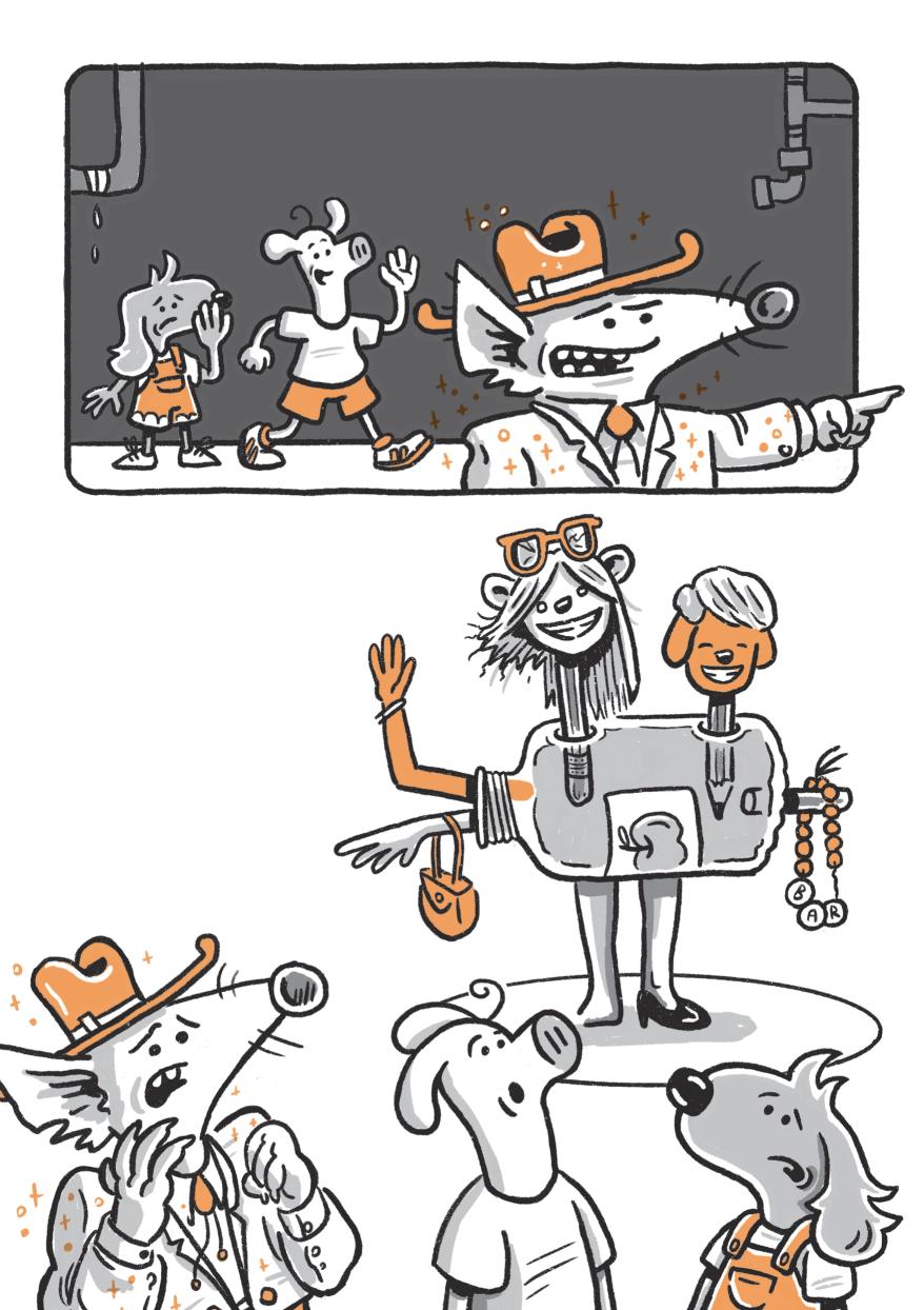 “No!” bleeped Torvolt, his arms growing like a roboctopus. “She said she didn’t want to see anyone, and it’s my job to keep her in a safe place.”