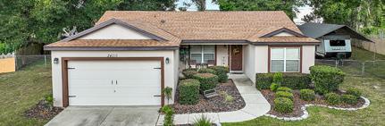 GORGEOUS GRAND ISLAND HOME! This four-bedroom home sits on a beautiful lot with a peaceful privacy fenced backyard. The spacious floorplan has a nice open feel with the kitchen opening directly to the living and dining areas. Enter thru convenient double doors to a large living room and beautiful bamboo hardwood flooring. The living room offers sliders that lead directly to your screen-enclosed lanai. The spacious kitchen has plenty of cabinets and counter space and leads directly to the laundry room and garage. We can’t forget to mention this garage... it is oversized with plenty of storage space and a side entry for beautiful curb appeal. The Master bedroom features separate his/her sink areas, a relaxing garden tub, and a separate shower. There are even double closets for extra storage and a separate door leading to the screened lanai. The three guest bedrooms share a spacious bathroom with double sinks and a tub/shower combo. Upgrades include fresh exterior paint with stucco professionally repaired and sealed, a newly re-built air handler, in-wall pest control system with tubes, a multi-zoned sprinkler system, and even a fire pit in the backyard with incredible views of the stars and rocket launches! You will love the two beautiful Tabebuia trees in the front yard that bloom twice a year in full yellow! You may often see nature visitors such as tortoises, hawks, and owls! This is a superb location with easy access to highways 429, 44, and 46. Grand Island is located between Lake Yale and Lake Eustis on the Harris Chain of Lakes. You will love to explore the local Chain of Lakes. This home is just 10 minutes to downtown Eustis and Umatilla, and 20 minutes to downtown Mt. Dora, Tavares, and Leesburg. It is also an easy commute to schools and shopping. Seller is also willing to escrow the amount for a NEW ROOF at closing for the new buyers! Don’t miss the opportunity to call this beauty HOME! MLS# G5058605 // $399,900.