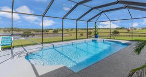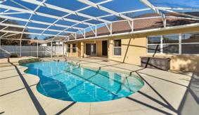 GUARD GATED 24/7...REMARKABLE POOL HOME! A brick paver driveway leads to an inviting side-entry garage, accommodating two vehicles plus a separate golf cart garage! Step inside a grand foyer opening to a den/office through elegant double glass French doors. The heart of this home is the spacious great room, with tray ceilings and recessed lighting. Triple glass sliding doors effortlessly recess and connect the interior to the lanai, where an in-ground saltwater pool awaits, complete with year-round heating, for endless swimming pleasure. HUGE kitchen with oversized island/ snack bar area and spacious dining area! Enjoy the walk-in pantry and cabinets galore for storage. Your oversized primary suite features a French door to the lanai and pool area. Two separate walk-in closets offer ample storage space, while the bathrooms leads to well-appointed laundry room, equipped with a washer and dryer. Split plan design places bedrooms 2 and 3 on opposite side of the home, sharing a guest bathroom with raised vanity and a tub/shower combination. Throughout the residence, you’ll find tasteful upgrades like granite counters, crown molding and stylish plantation shutters. Plus, enjoy the added benefit of low electric bills with energy efficient double pane windows and pool heat pump! Experience luxury living where every detail has been carefully considered to offer comfort, style, and security. Don’t miss the opportunity to make this your dream home! MLS# G5072929 // $669,000.